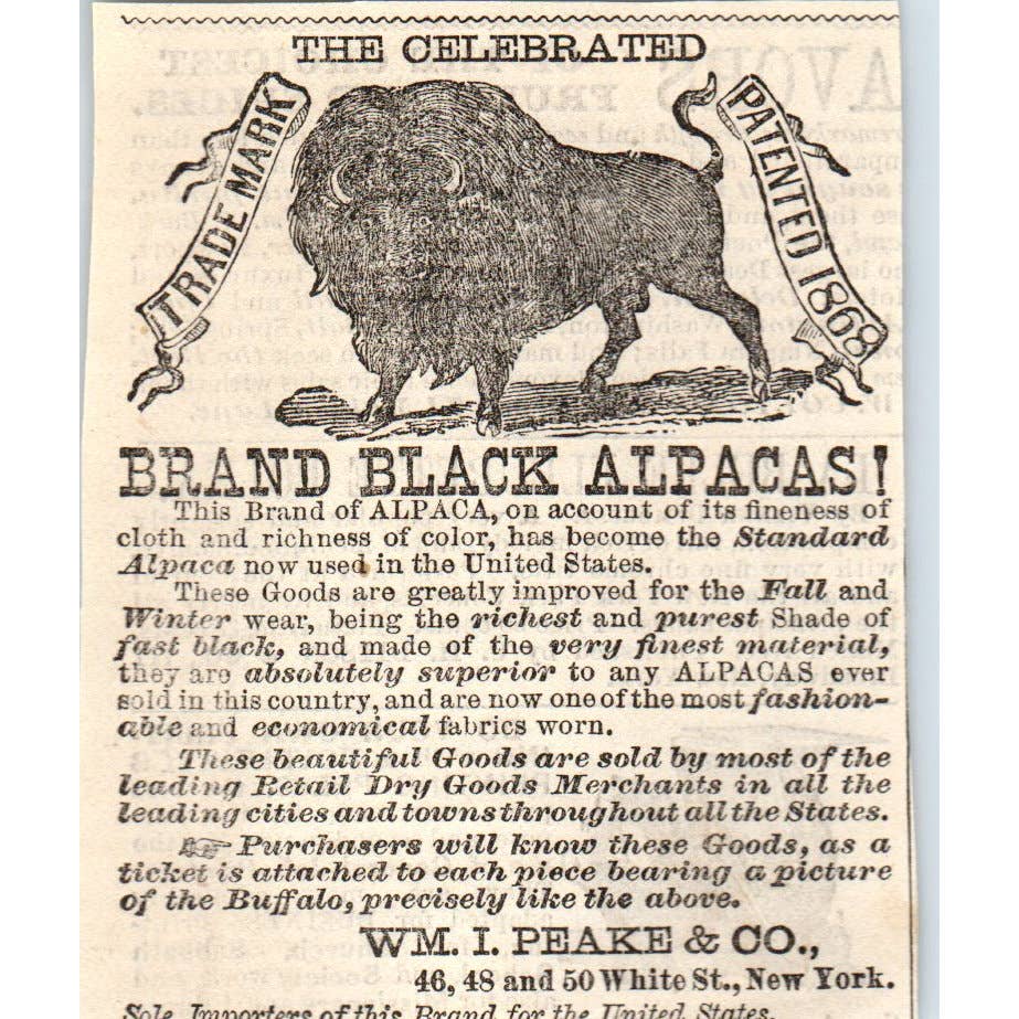 1878 Peterson's Magazine Ad - Brand Black Alpacas WM. I. Peake & Co NY SF2