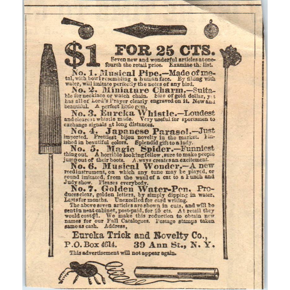 1878 Peterson's Magazine Ad - Eureka Trick and Novelty Co. Ann Street NY SF2