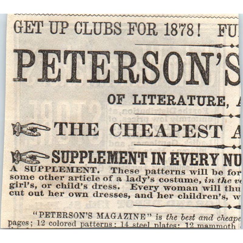 Original print ad taken from 1878 Peterson's Magazine. See pics for condition.