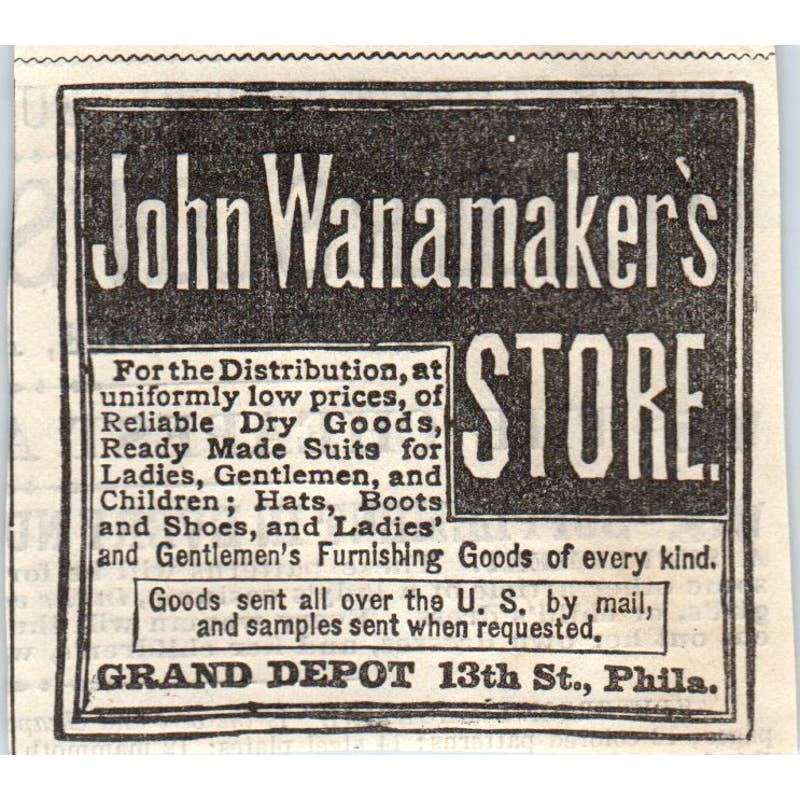 1878 Peterson's Magazine Ad - John Wanamaker's Store Dry Goods Philadelphia SF2
