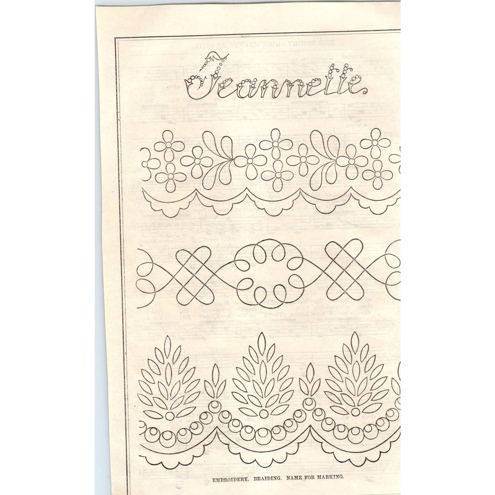 1878 Victorian Engraving Embroidery Pattern Jeannette Braiding SF2