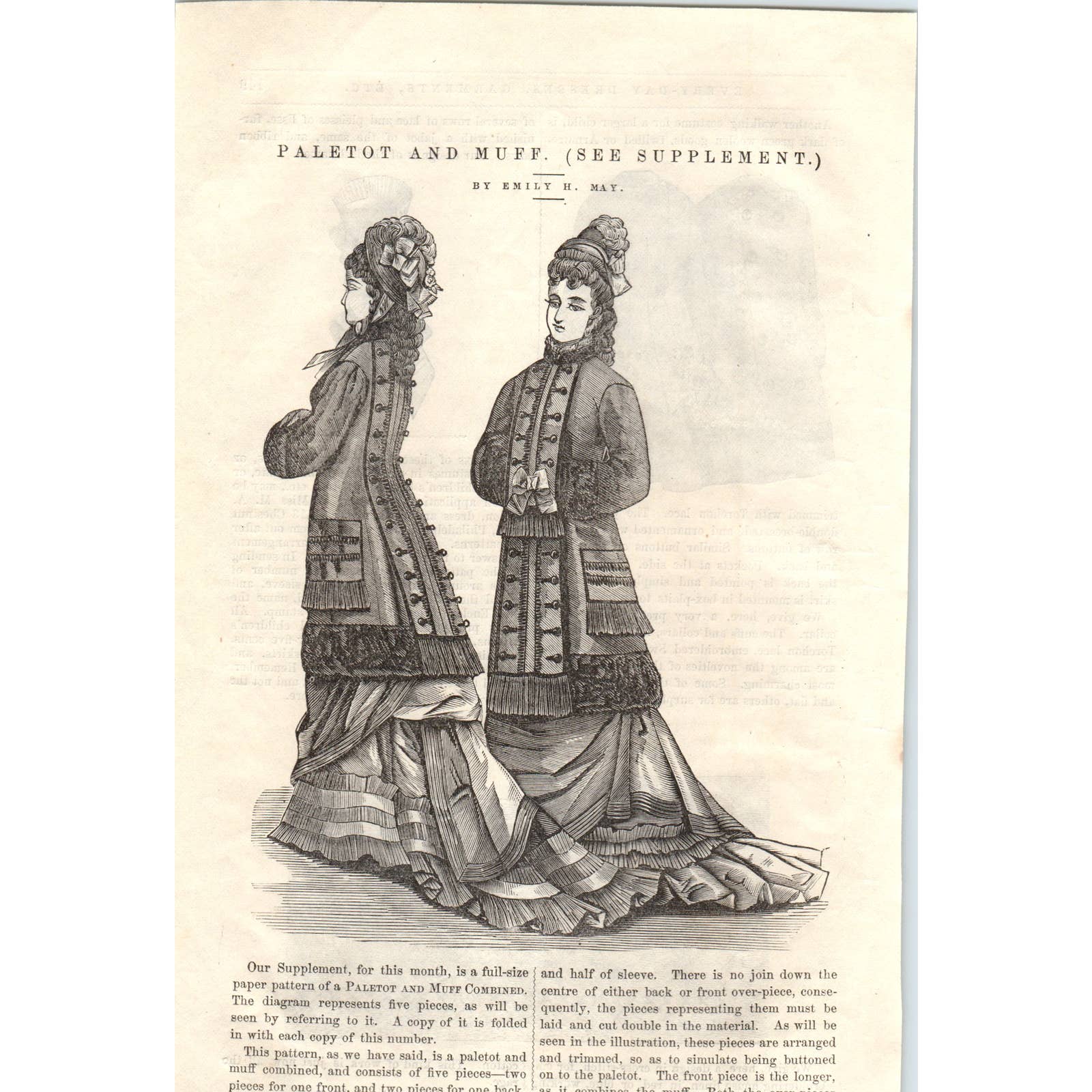 1878 Victorian Engraving Paletot and Muff Combined Emily May SF2