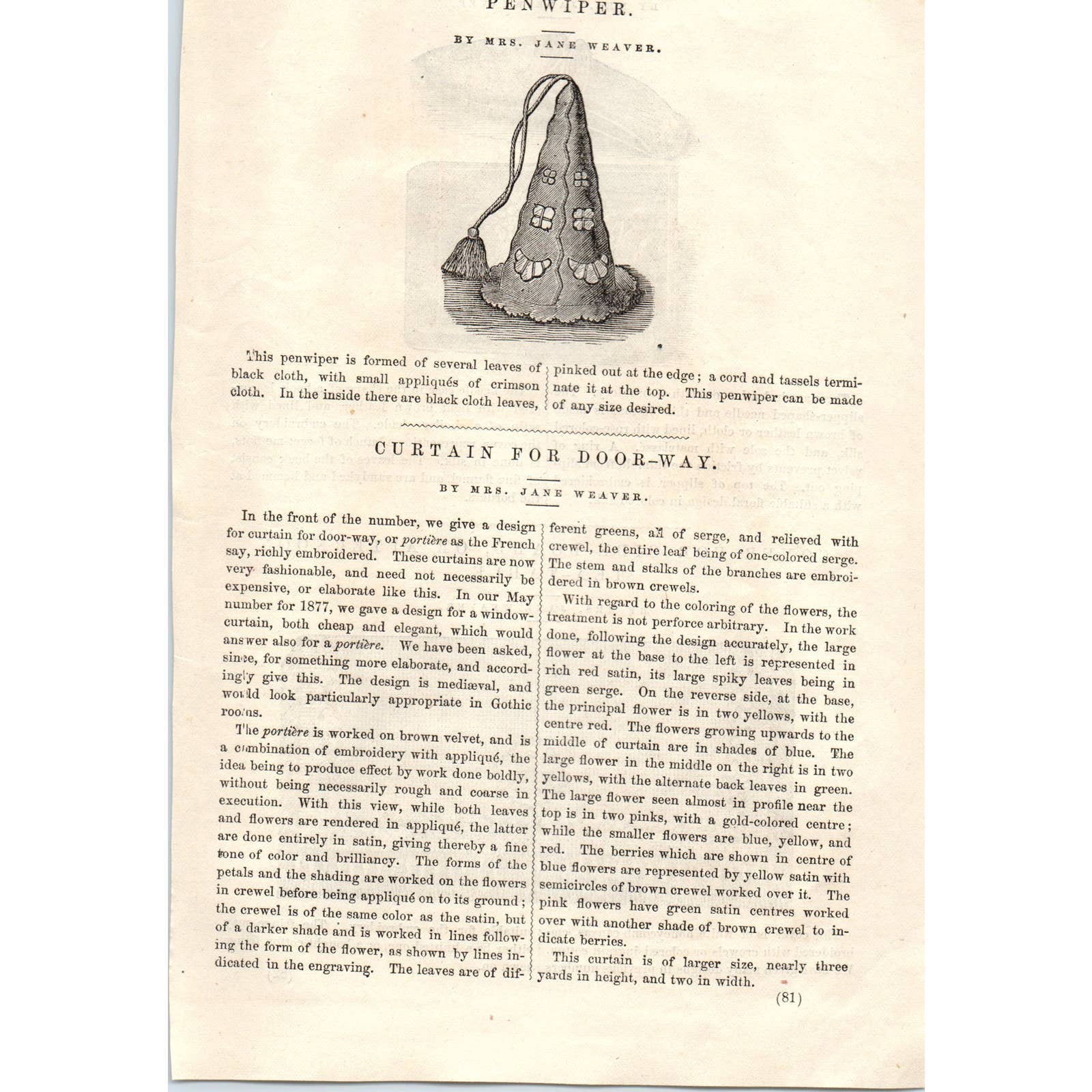 1878 Victorian Engraving Penwiper Needle Cases Side-Board Cover SF2