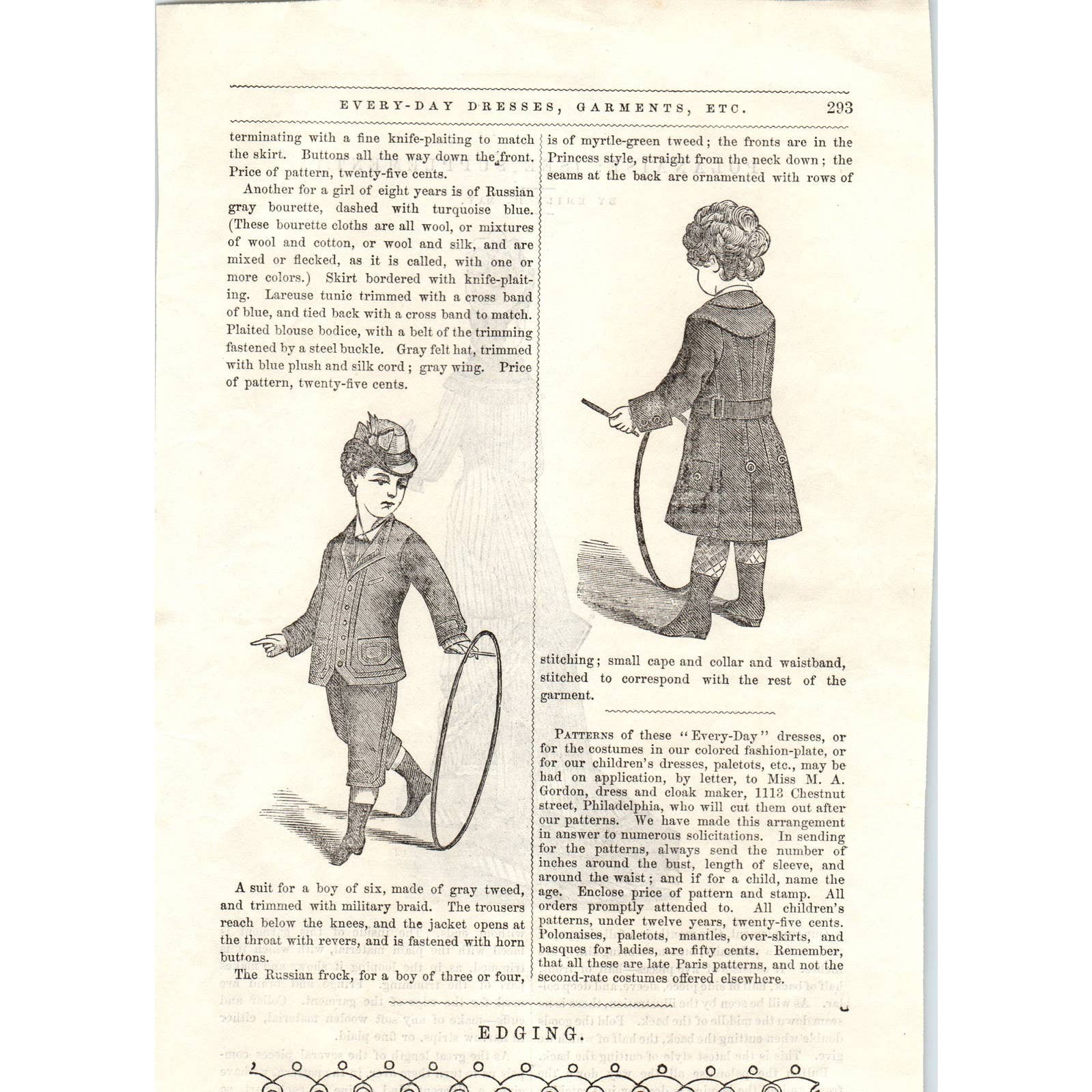 1878 Victorian Engraving Polanaise Dress Boy's Tweed Suit SF2