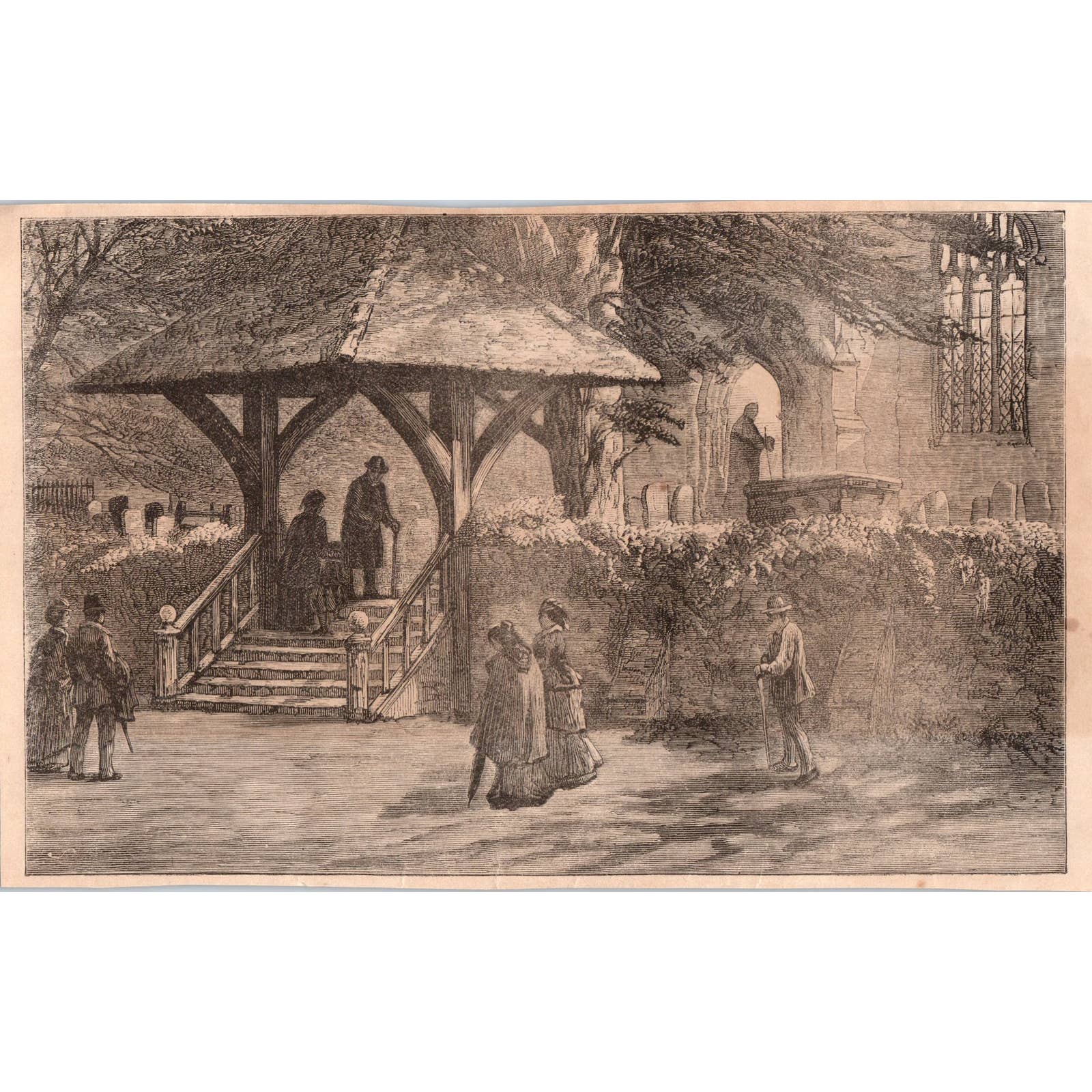 1878 Victorian Engraving - Townspeople Going to Church SF2