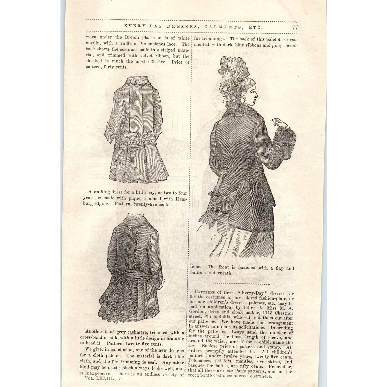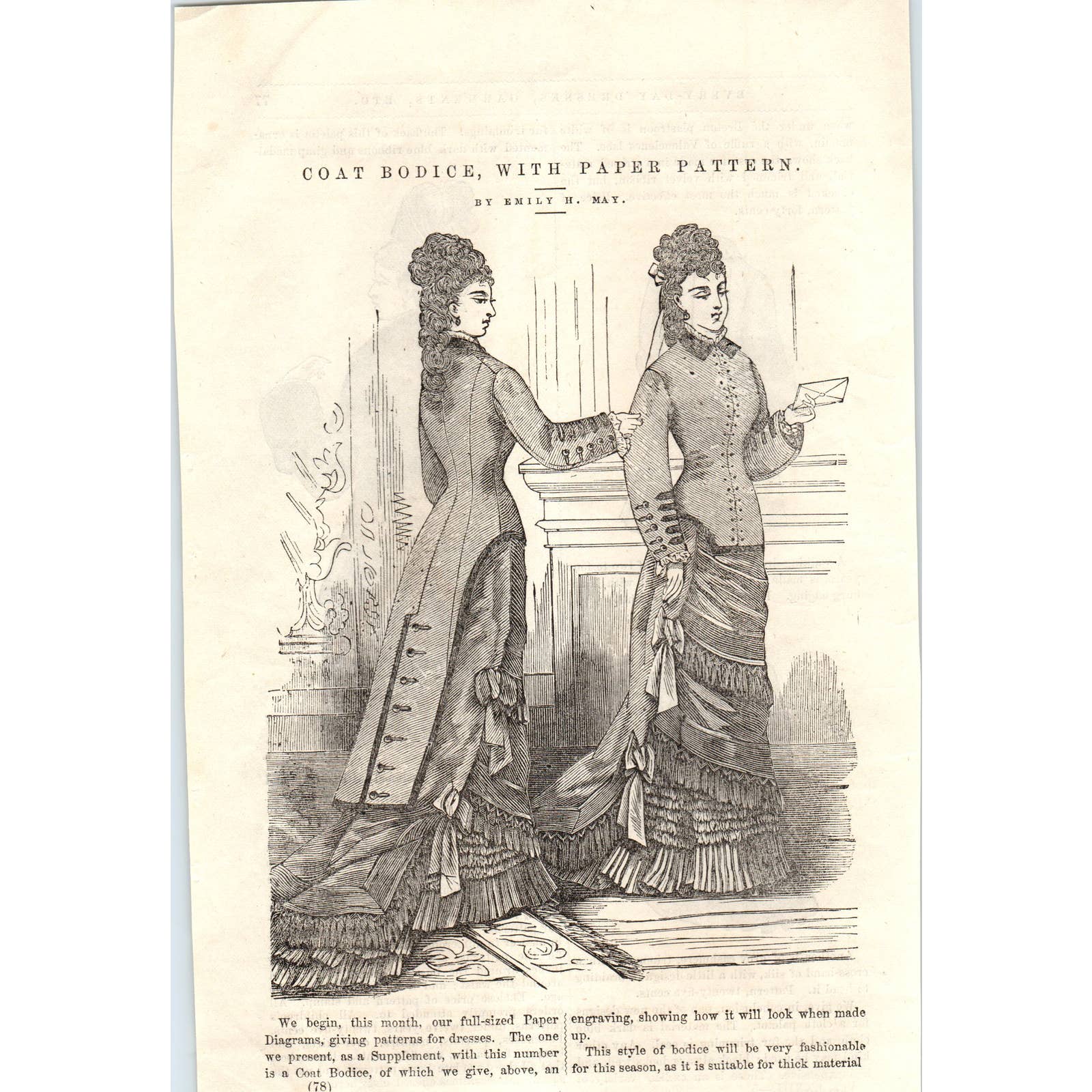 1878 Victorian Engraving Women's Fashion Coat Bodice Dress SF2