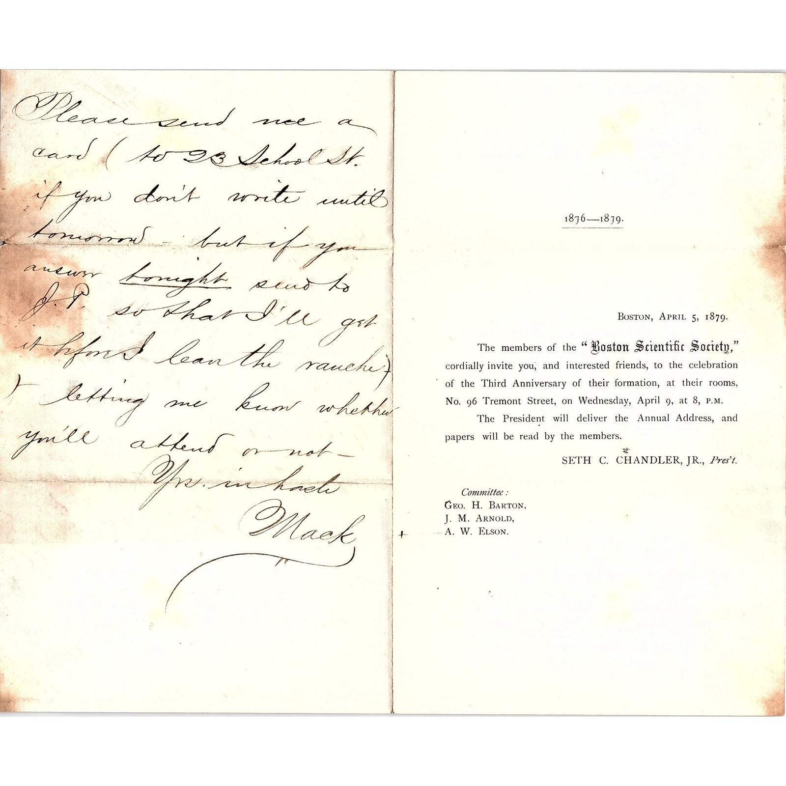 1879 Boston Scientific Society Third Anniversary Invitation Seth C Chandler AF4-2
