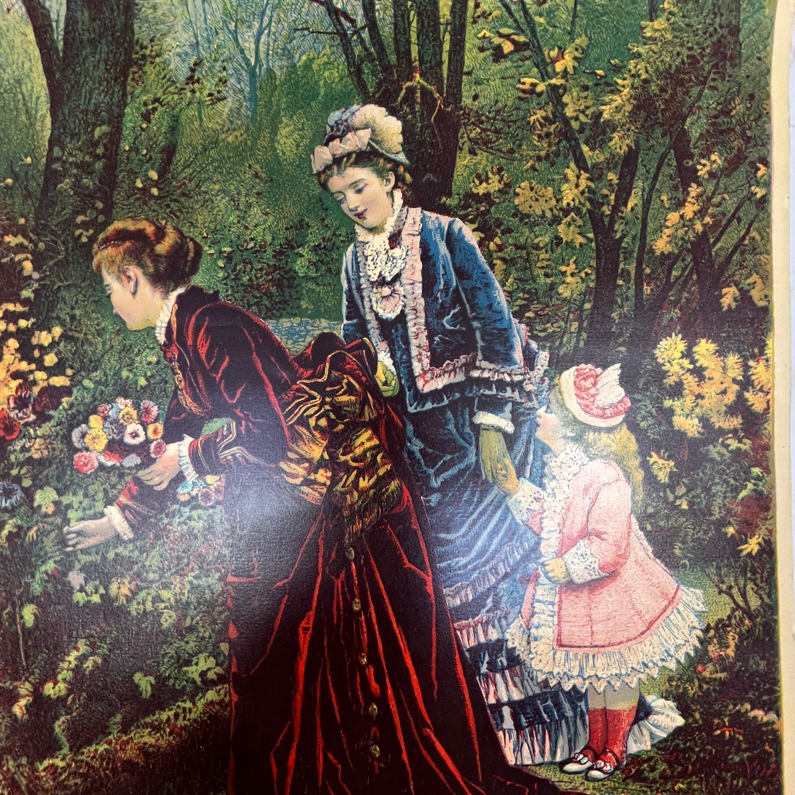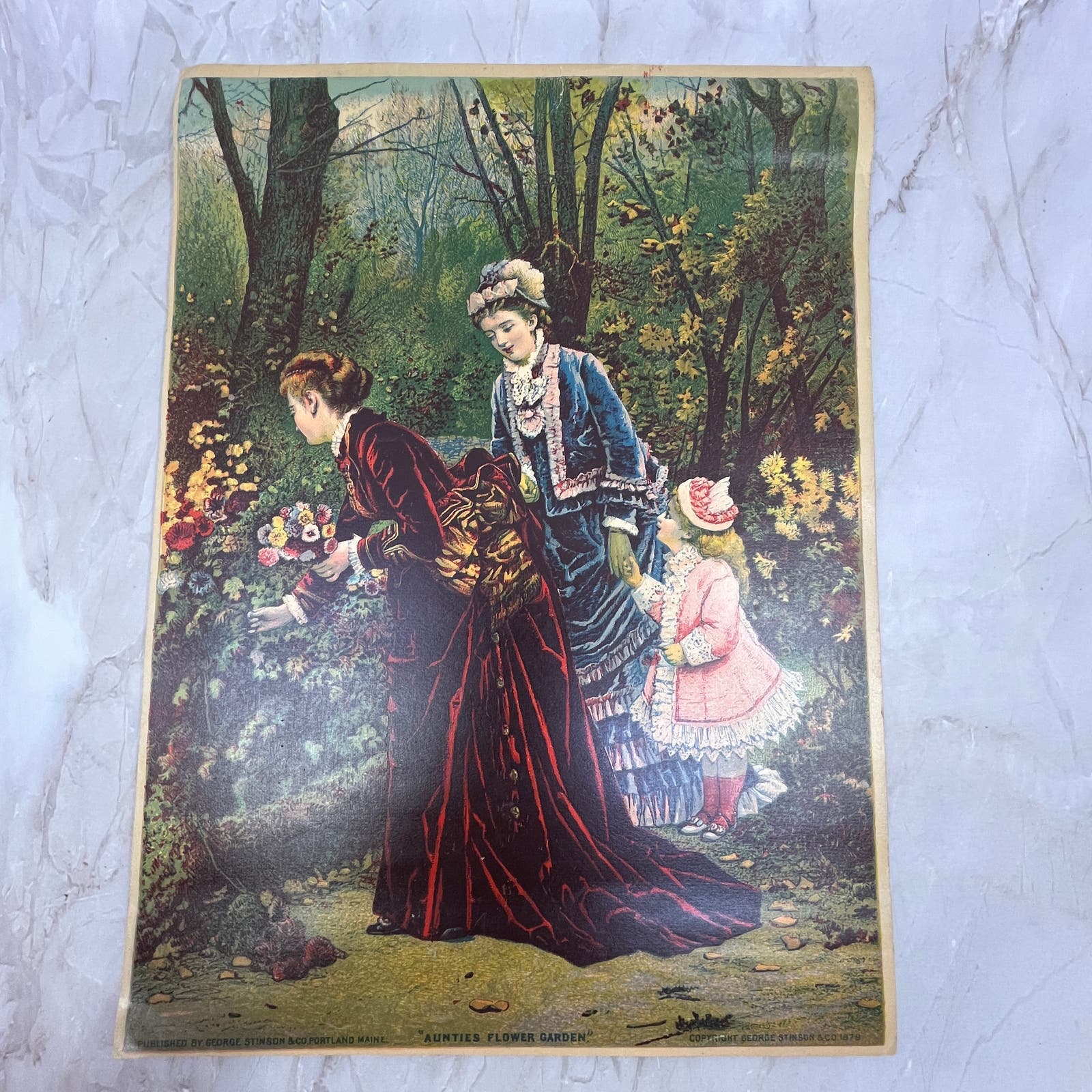 1879 George Stinson & Co. Chromolithograph Aunties Flower Garden 10x14 FL6-3