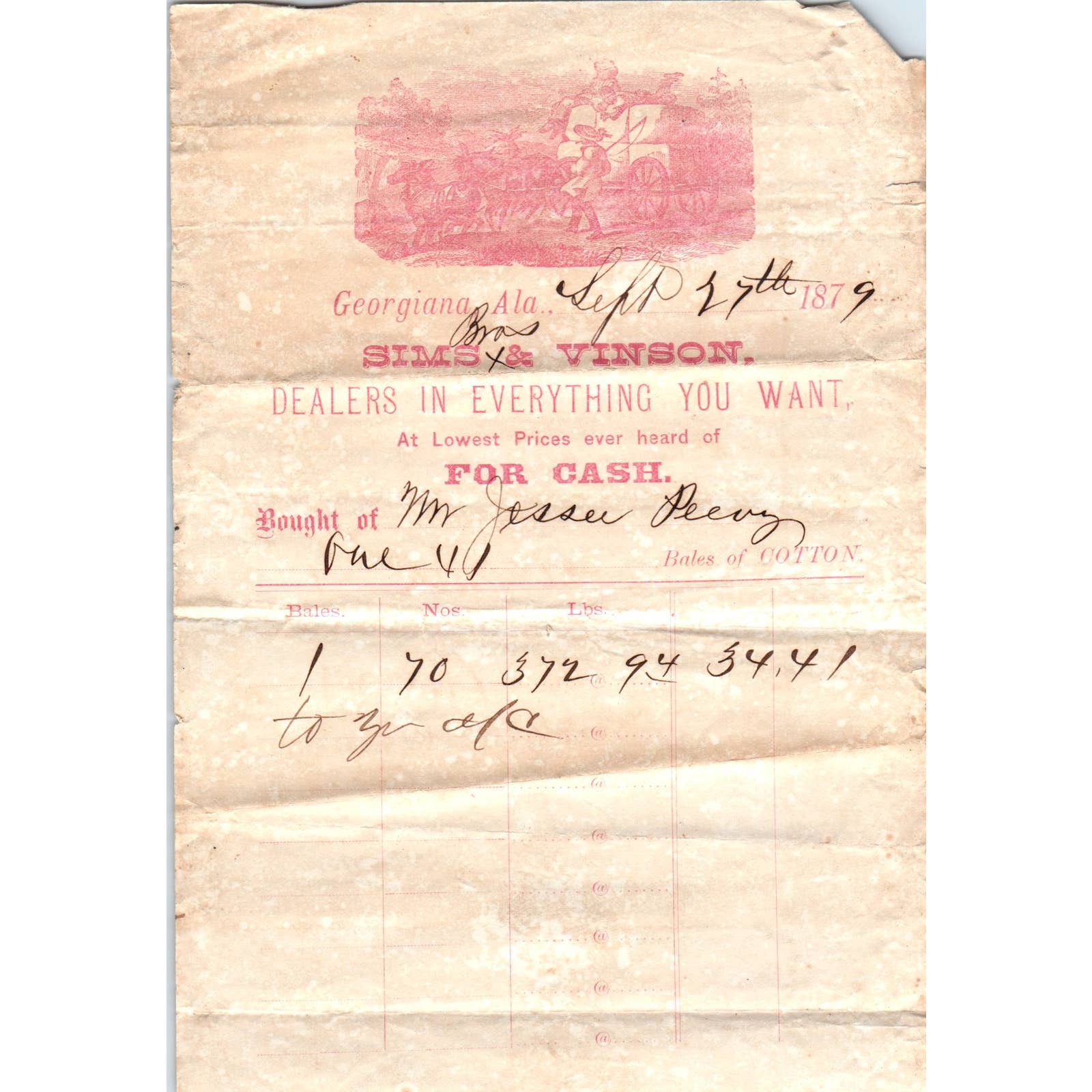 1879 Letterhead Billhead Sims & Vinson Dry Goods Bales Cotton Georgiana AL AD6