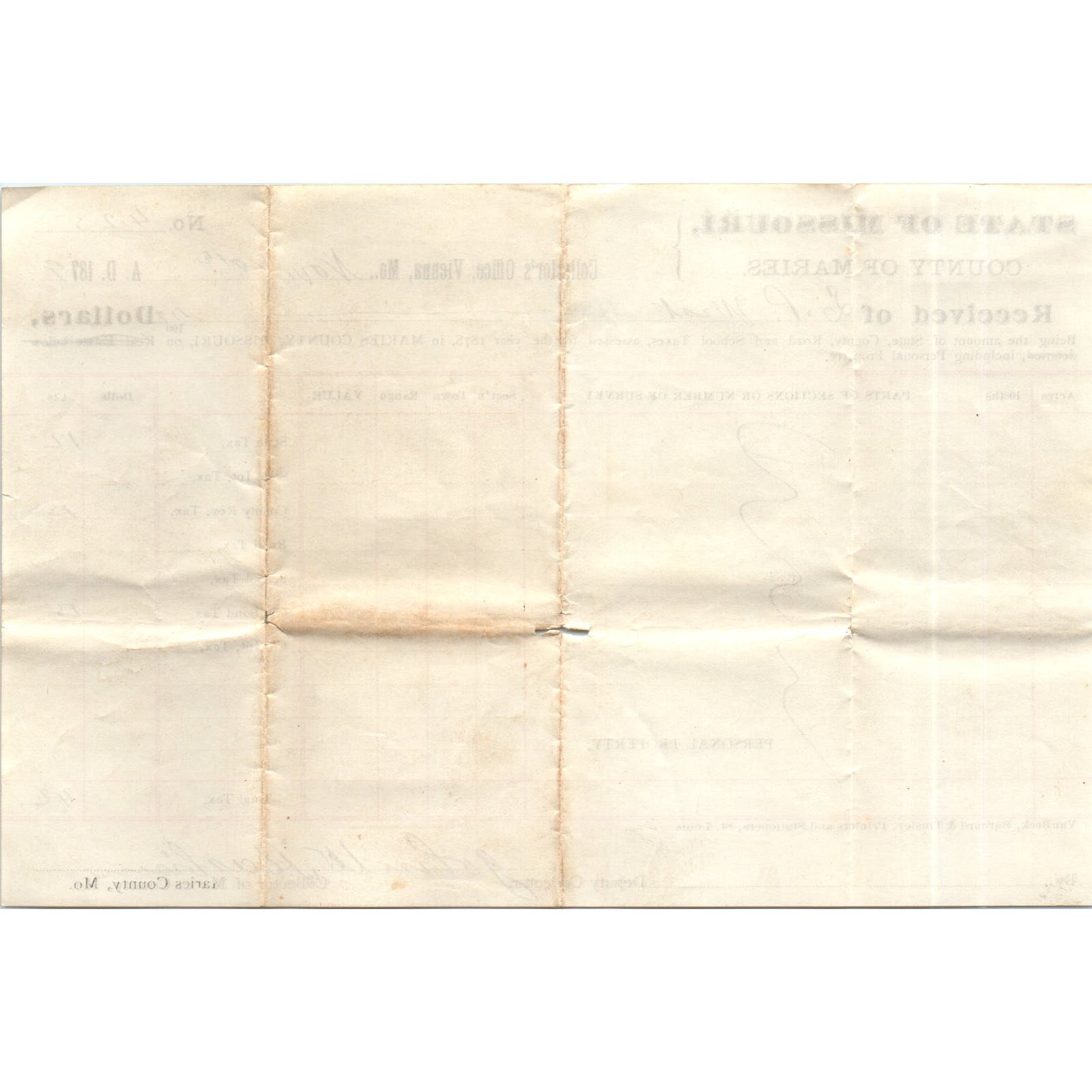 1879 Missouri County of Maries Tax Collector Receipt Vienna MO AE7