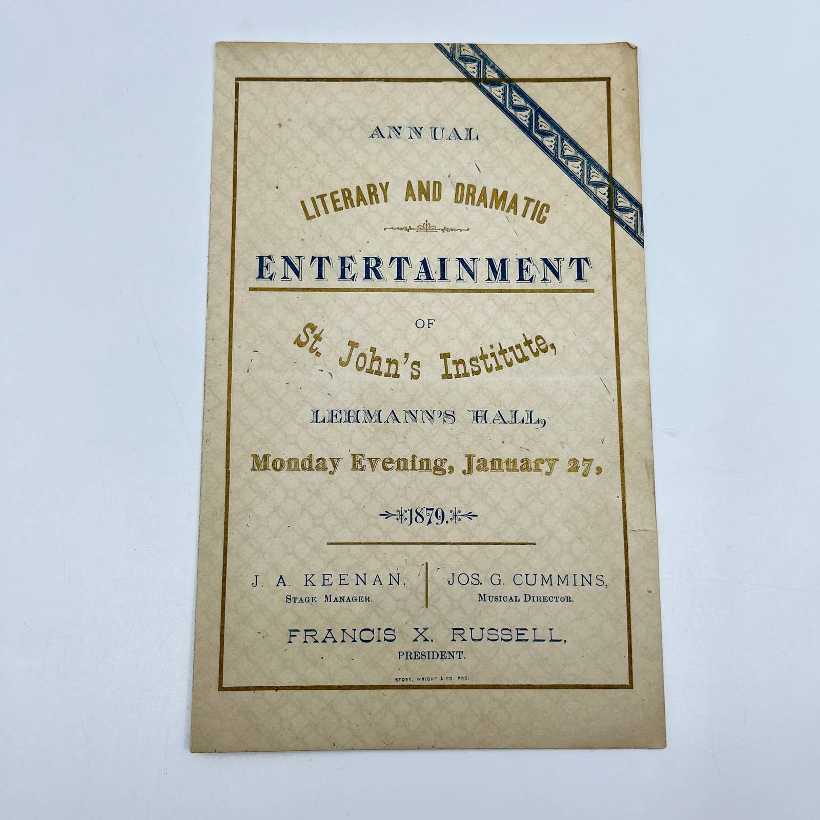 1879 St. John’s Institute Lehmann’s Hall Drama Event Program Baltimore MD AA7