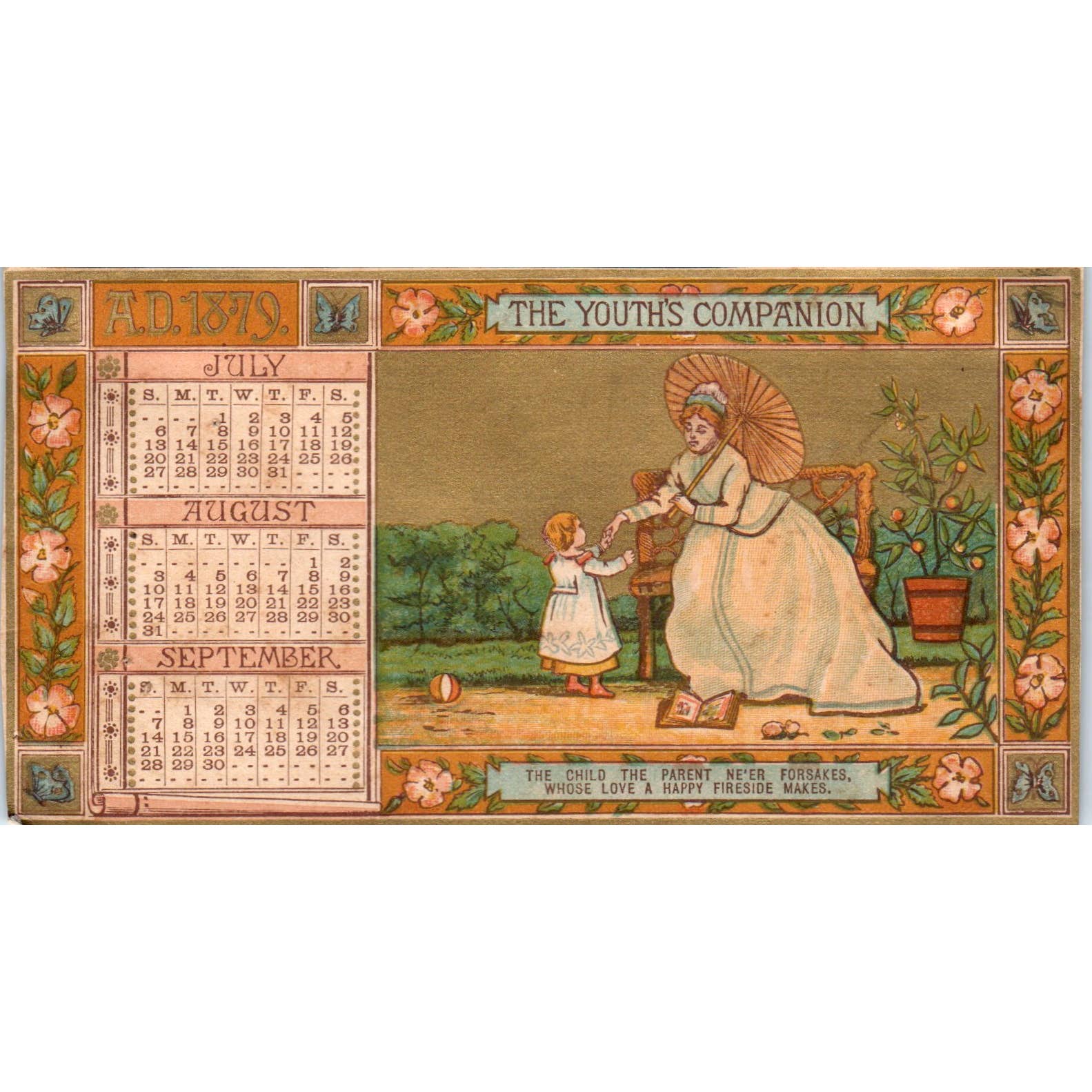 1879 Victorian Trade Card Youth's Companion Child and Lady with Parasol SF2