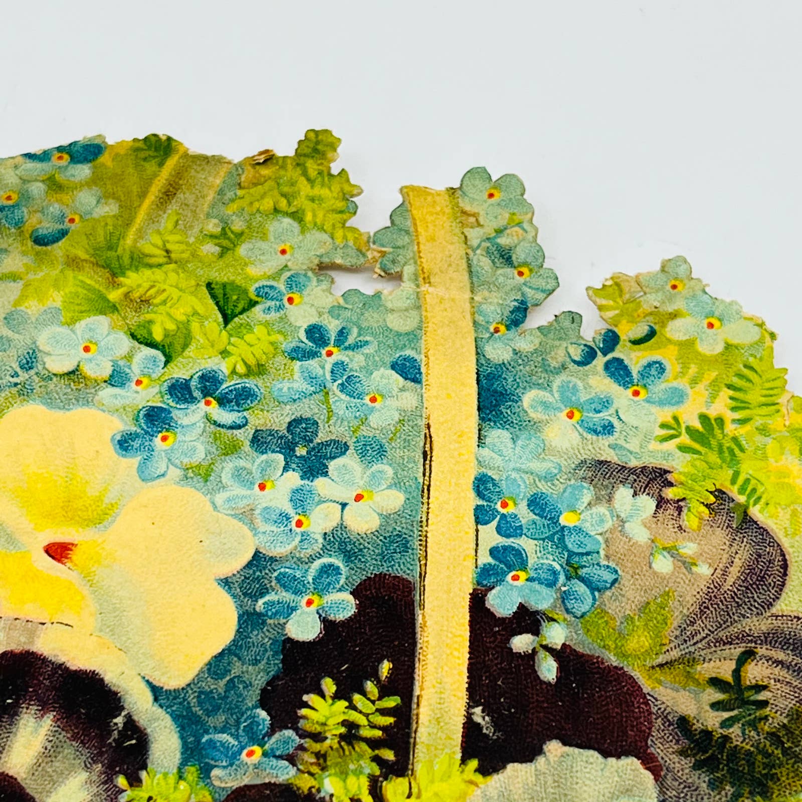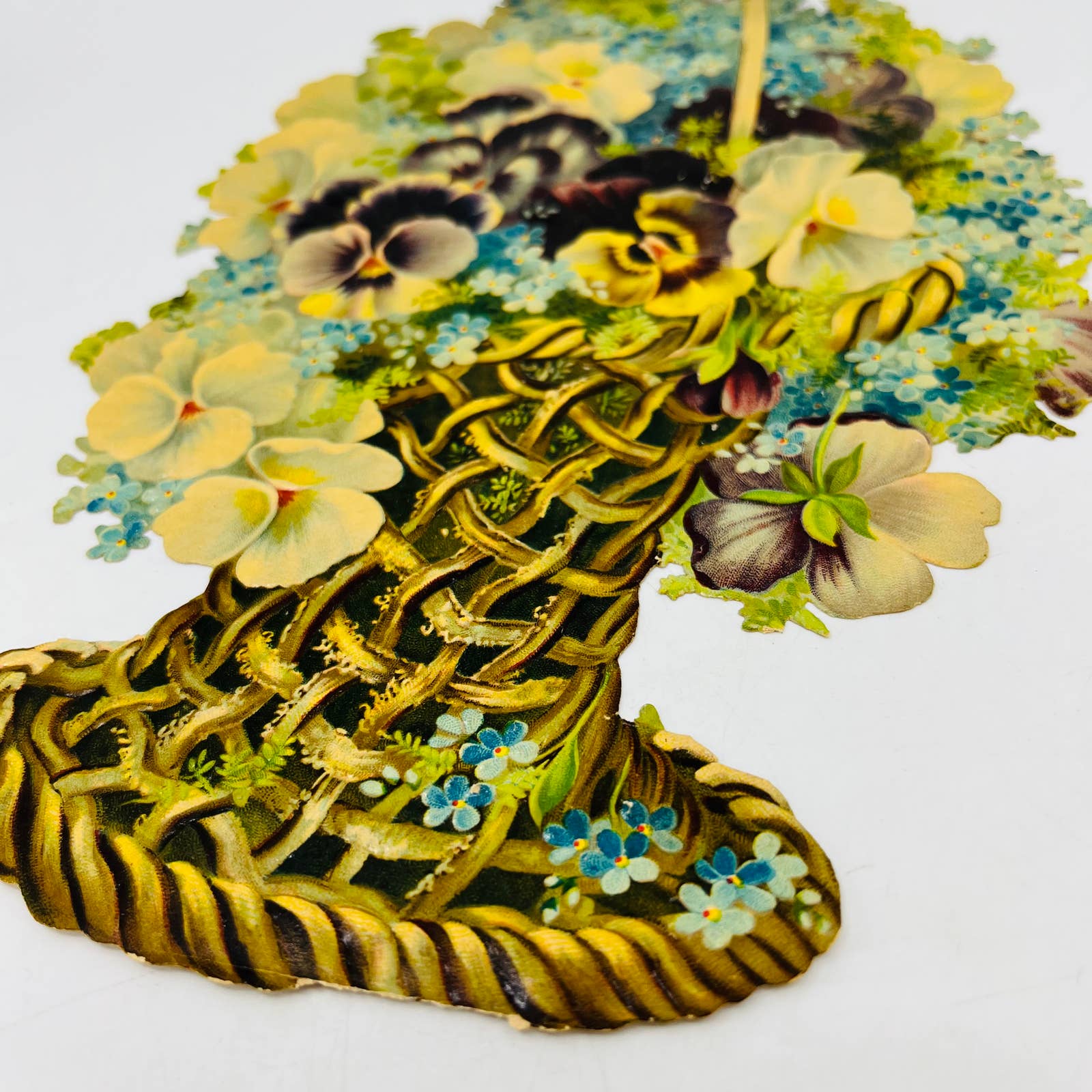1880's ANTIQUE Victorian DIE CUT Embossed Large Flower Basket Pansies 9 x 7 AA3