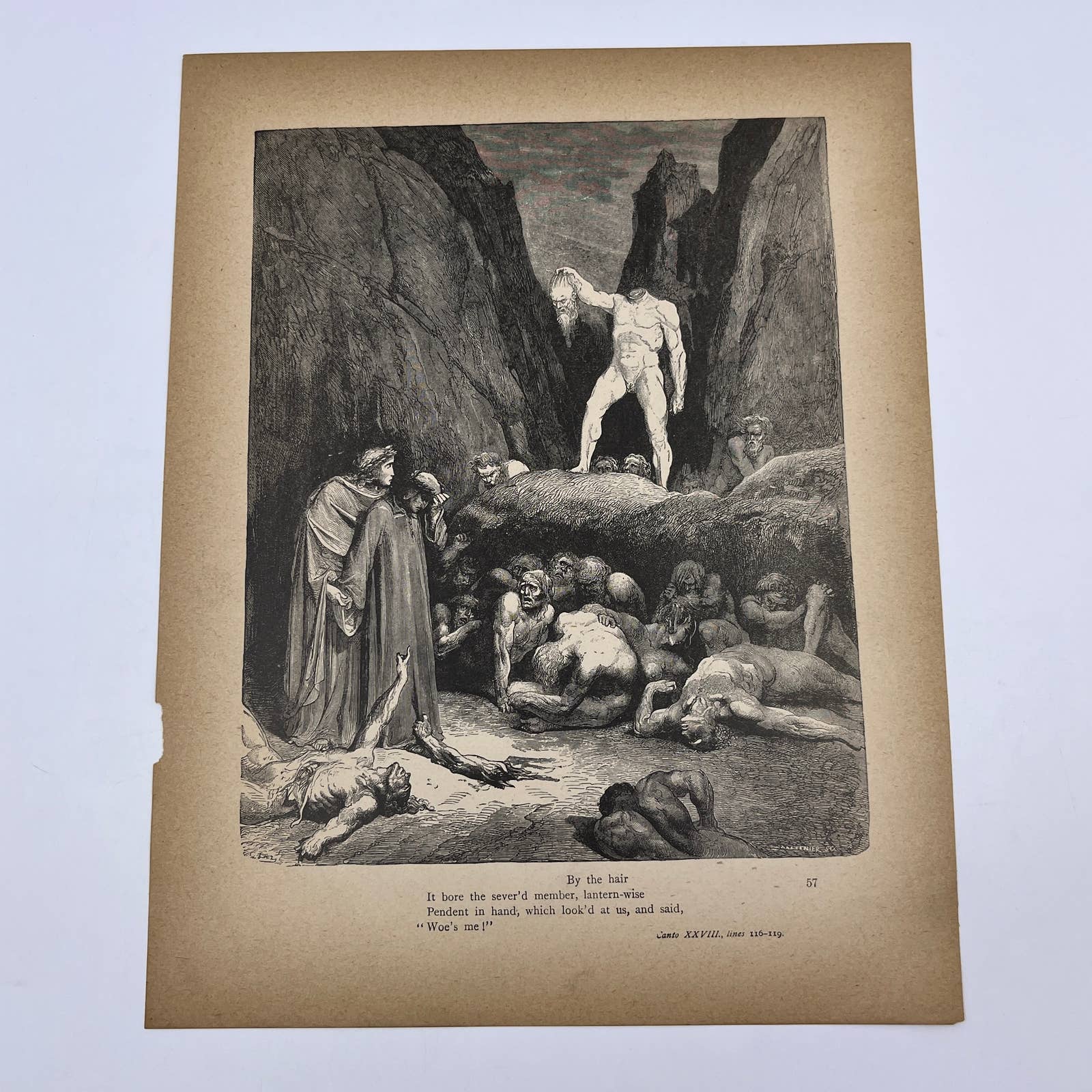 1880s Gustave Dore Engraving Dante By the hair It bore the sever'd member FL4