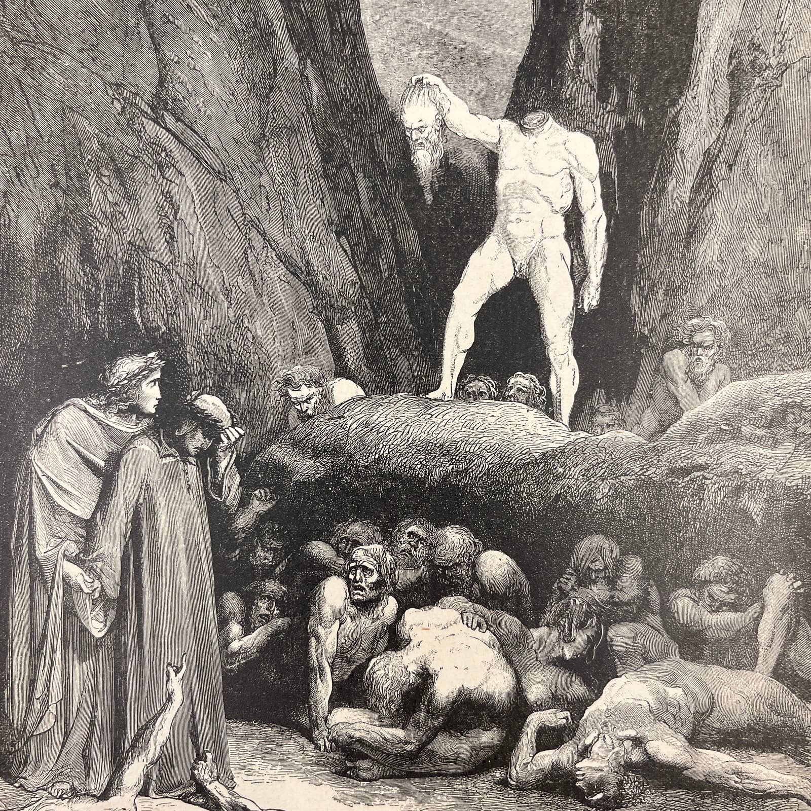Taken from an original 1880s Divine Comedy Book of Engravings by Gustav Dore. Paper is getting brittle around the edges and may have small tearing and some spots and other signs of age, as it is near 150 years old.