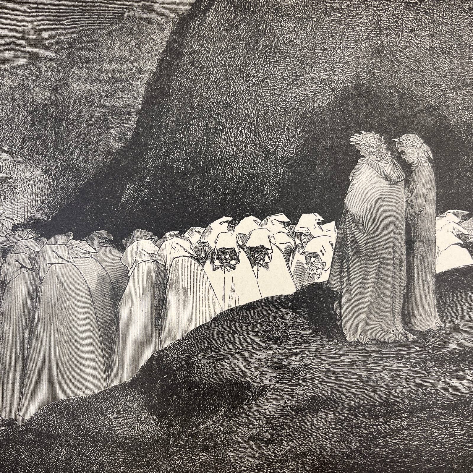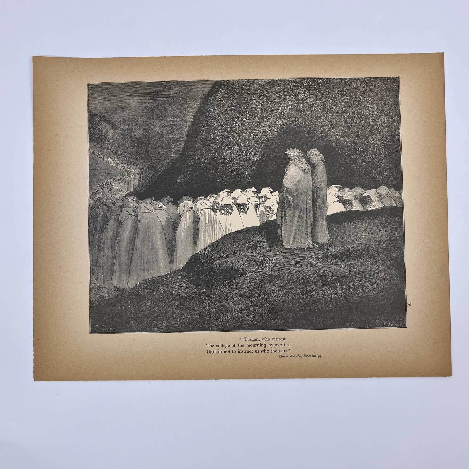 1880s Gustave Dore Engraving Dante The college of the mourning hypocrites FL4