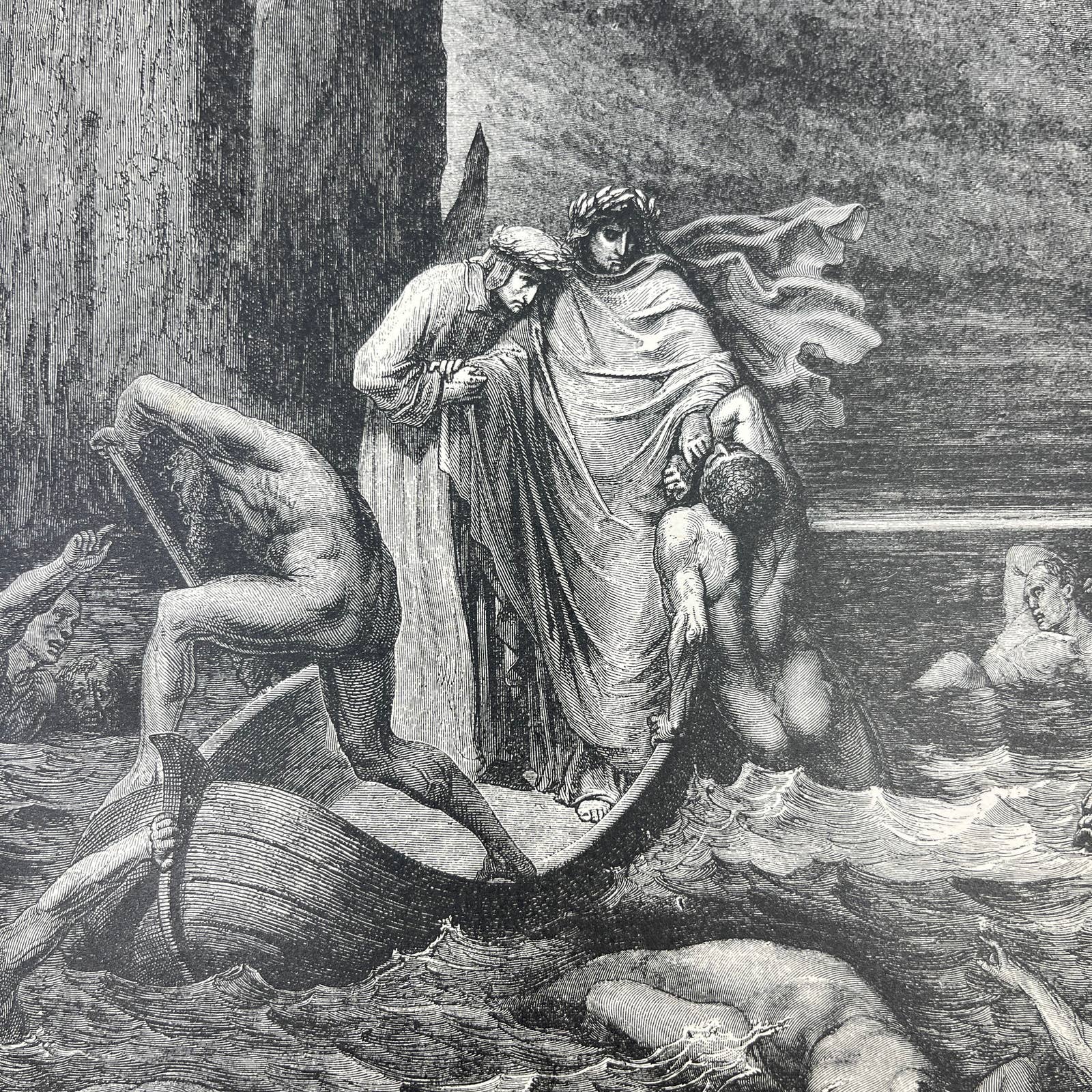1880s Gustave Dore Engraving Divine Comedy Accosted on the River Styx FL4