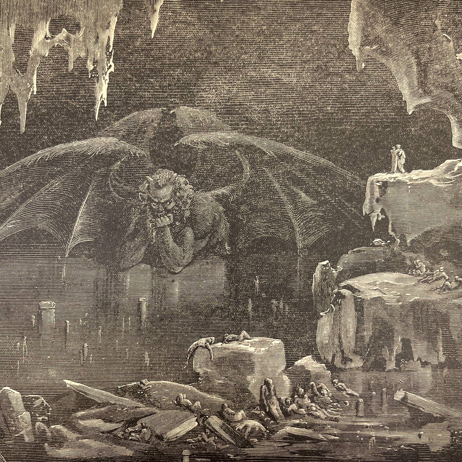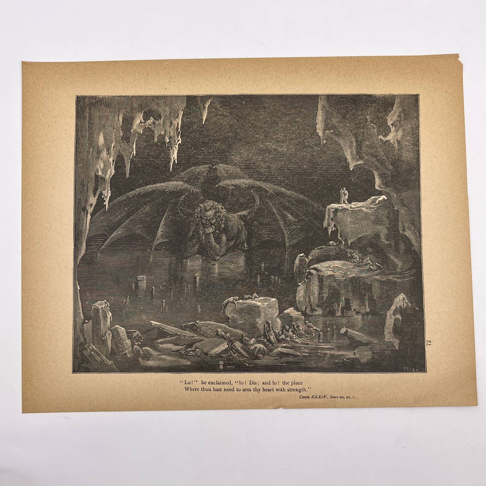 Taken from an original 1880s Divine Comedy Book of Engravings by Gustav Dore. Paper is getting brittle around the edges and may have small tearing and some spots and other signs of age, as it is near 150 years old.