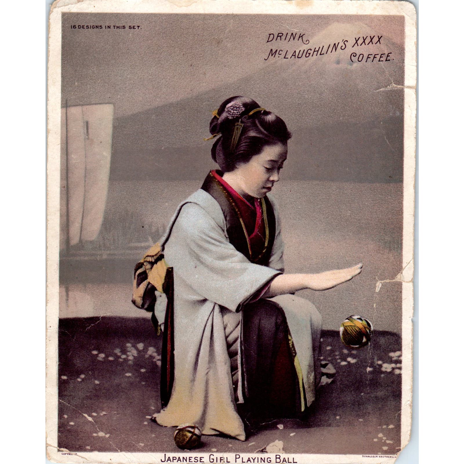 1880s Japanese Girl Playing Ball McLaughlin's Coffee Large Victorian Trade Card AE9-LT