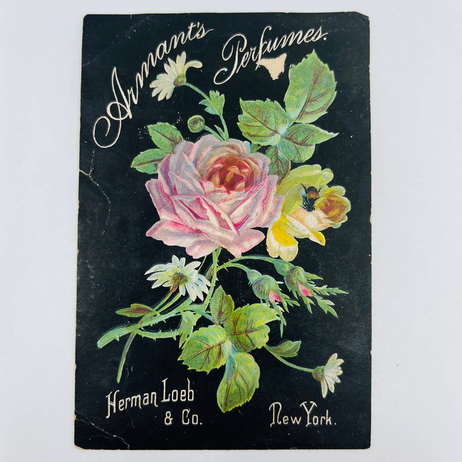 1880s Trade Card Armant’s Perfumes Herman Loeb NY Pink Rose AA2