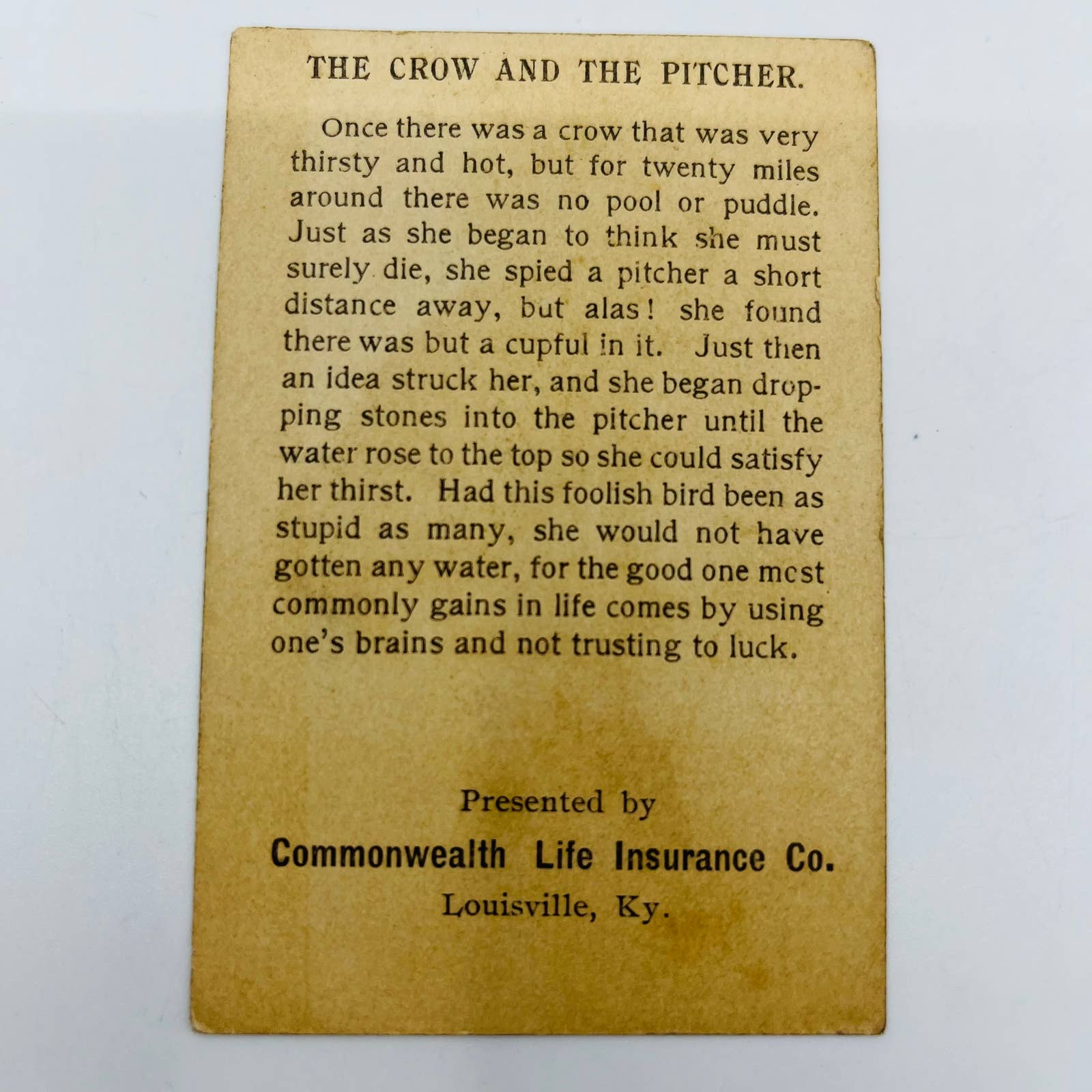 1880s Trade Card Commonwealth Life Insurance Louisville KY Crow & Pitcher AA2