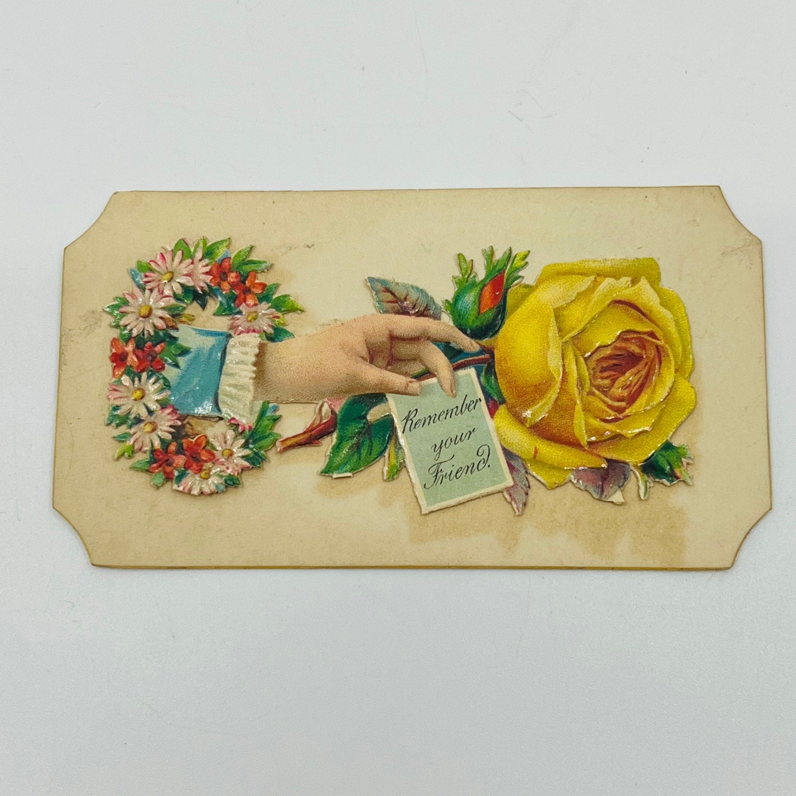 1880's VICTORIAN CALLING CARD LITHO Die Cut Remember Your Friend Sample SAH9-S9