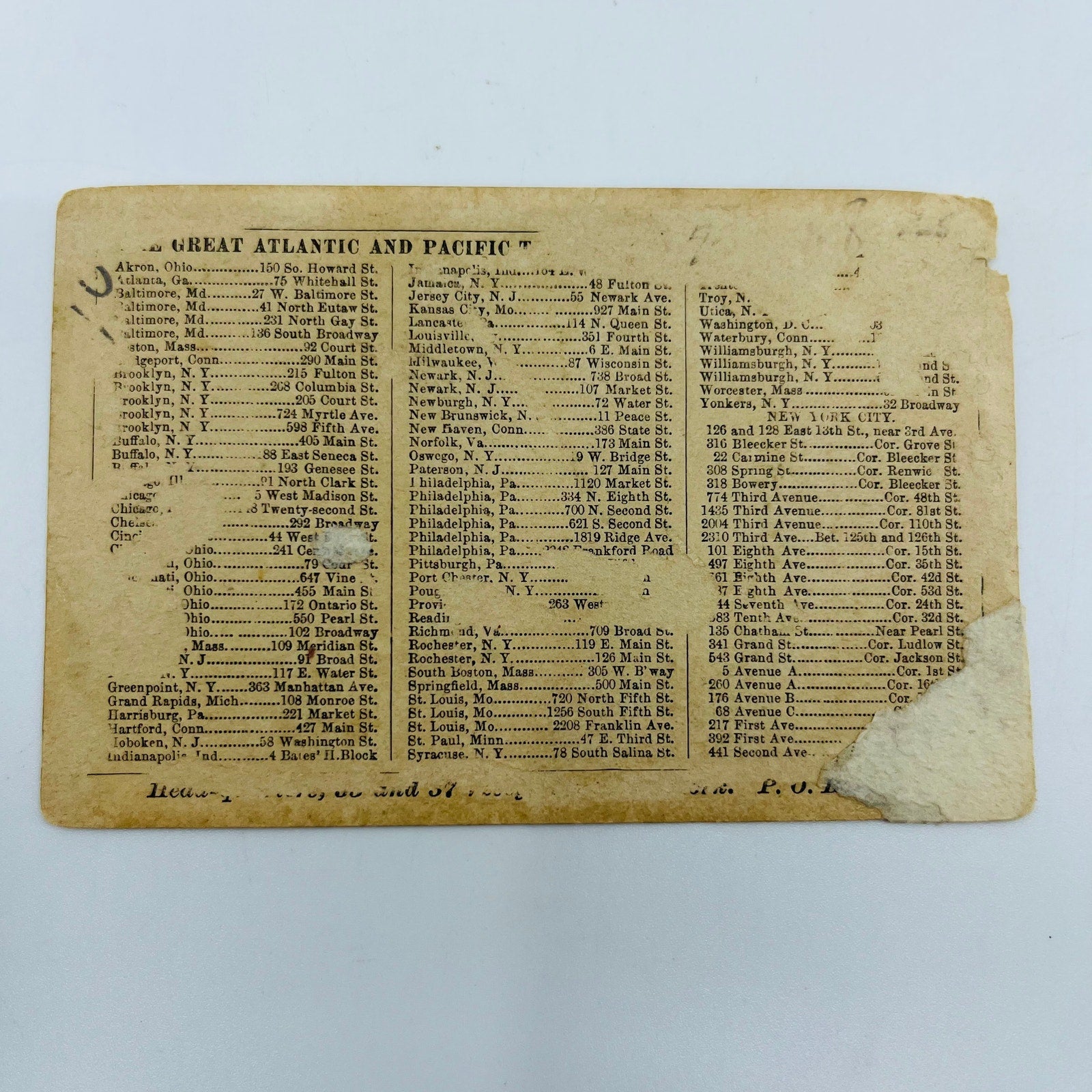 1880s Victorian Trade Card Great Atlantic Pacific Tea Co Man Eating Chicken AH9-M6