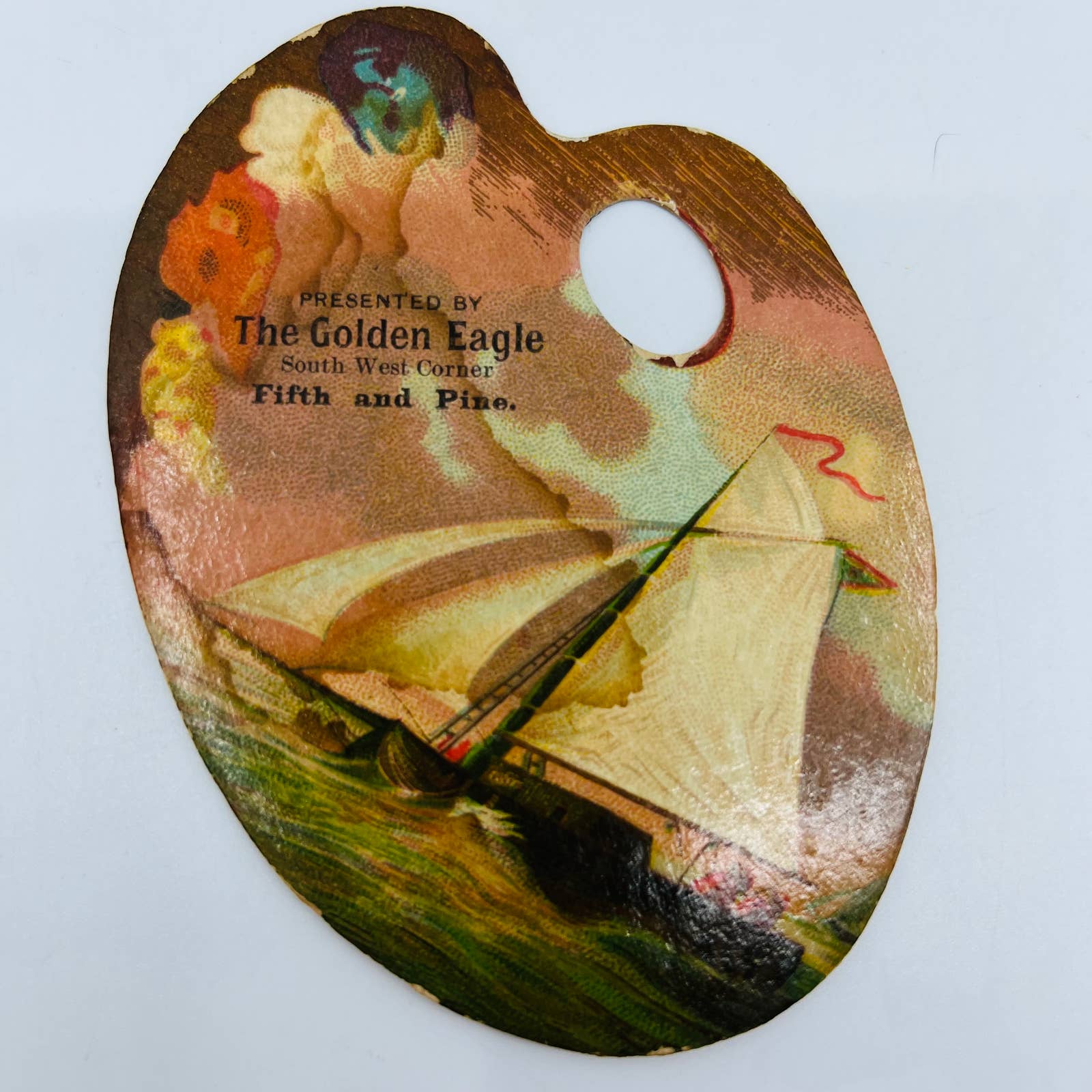1880s Victorian Trade Card Die Cut Artist Pallet Sailboat Golden Eagle AA2