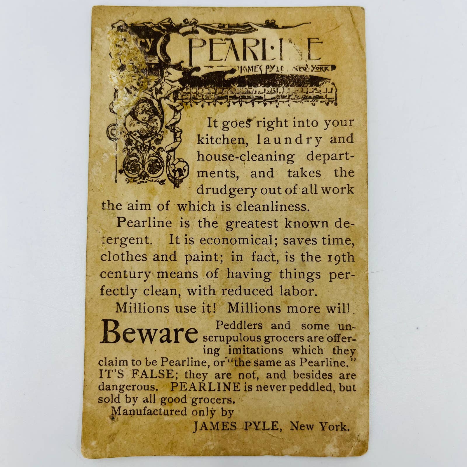 1880s Victorian Trade Card James Pyle NY Pearline Soap Young Girl Hat AA2