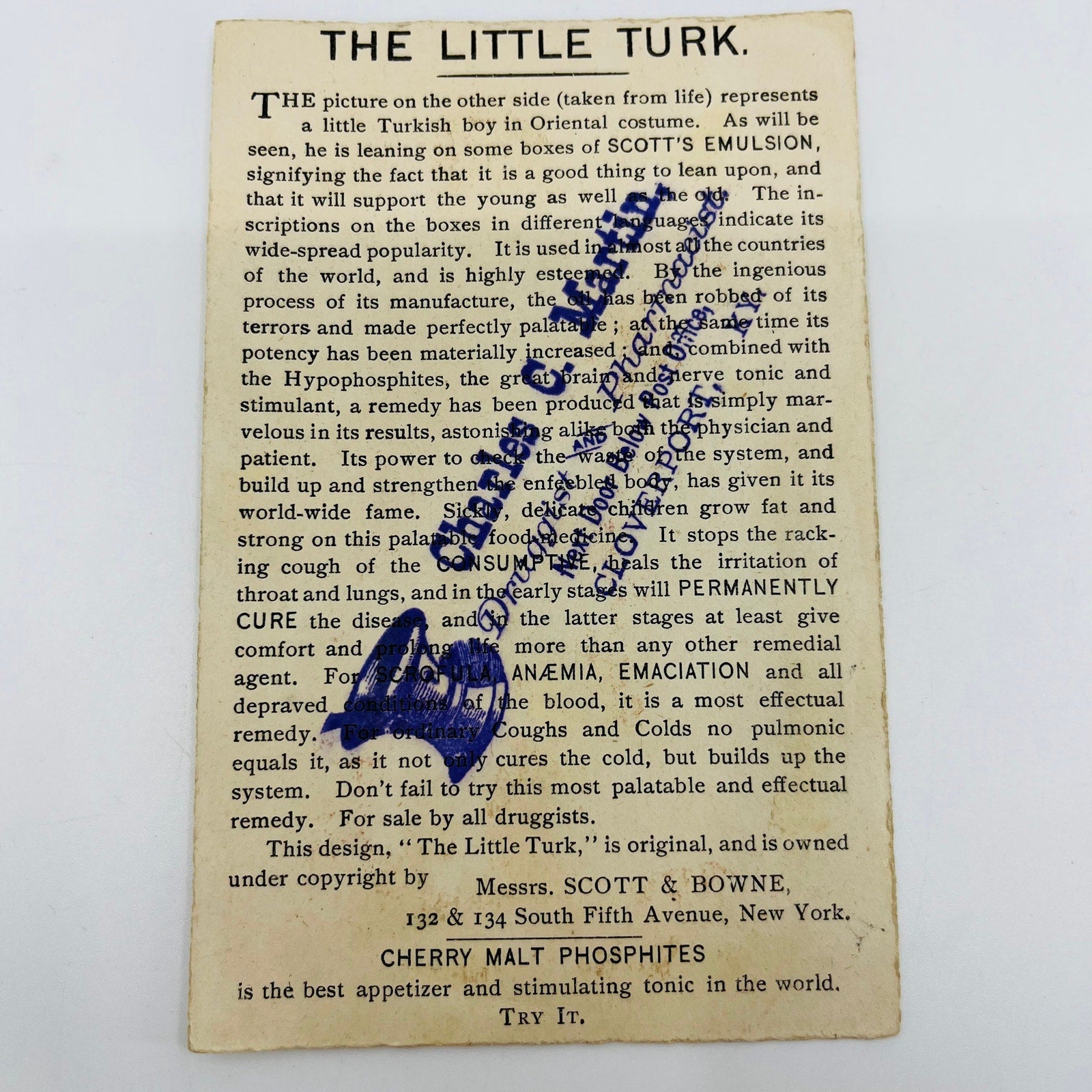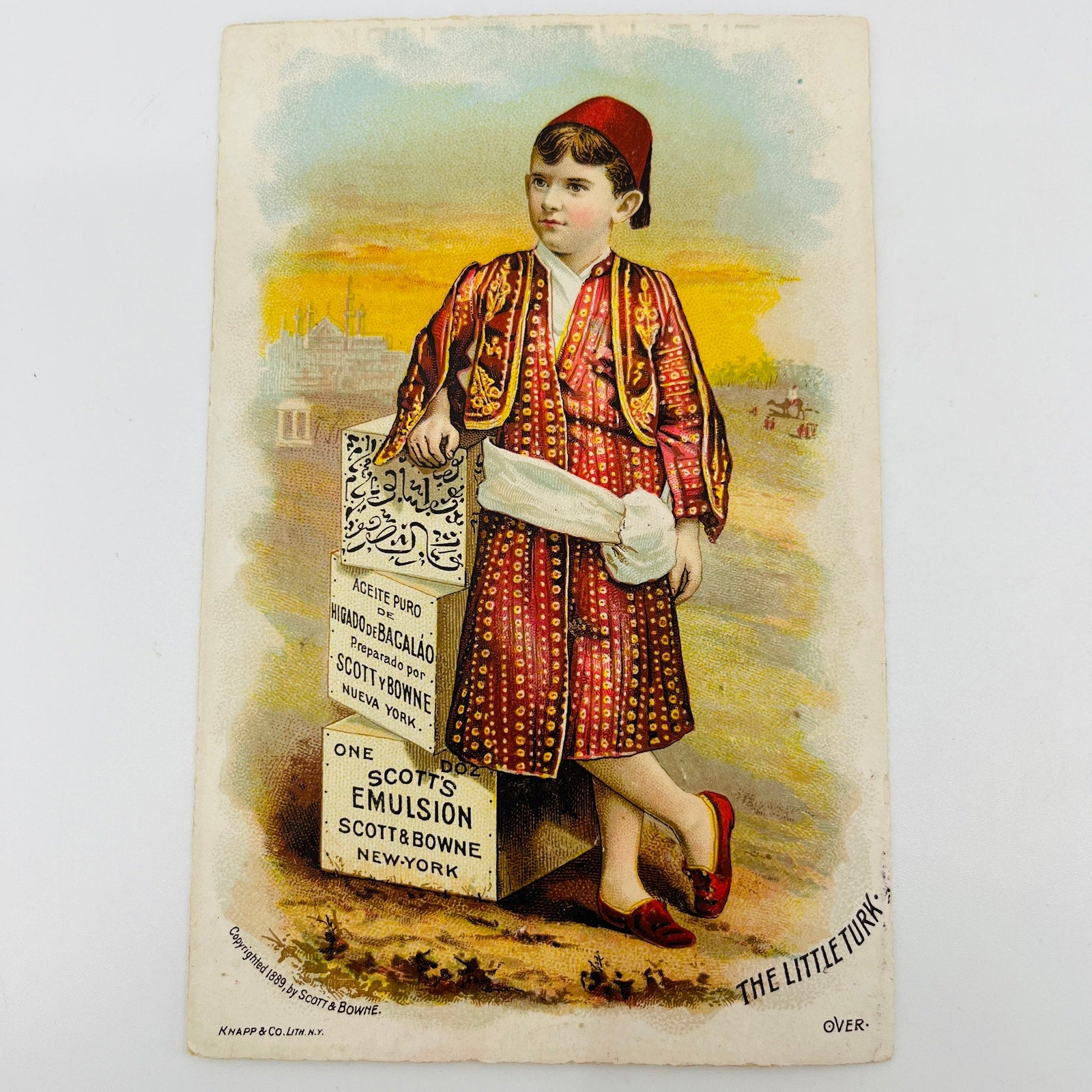 1880s Victorian Trade Card Quack Medicine Scotts Emulsion The Little Turk NY SAH9-S9