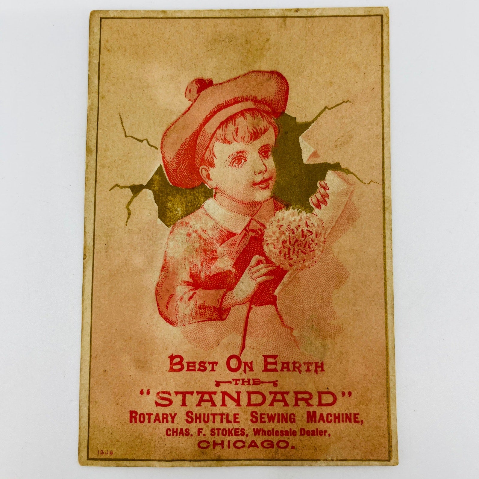 1880s Victorian Trade Card Standard Rotary Shuttle Sewing Machine Chicago IL SAH9-M11