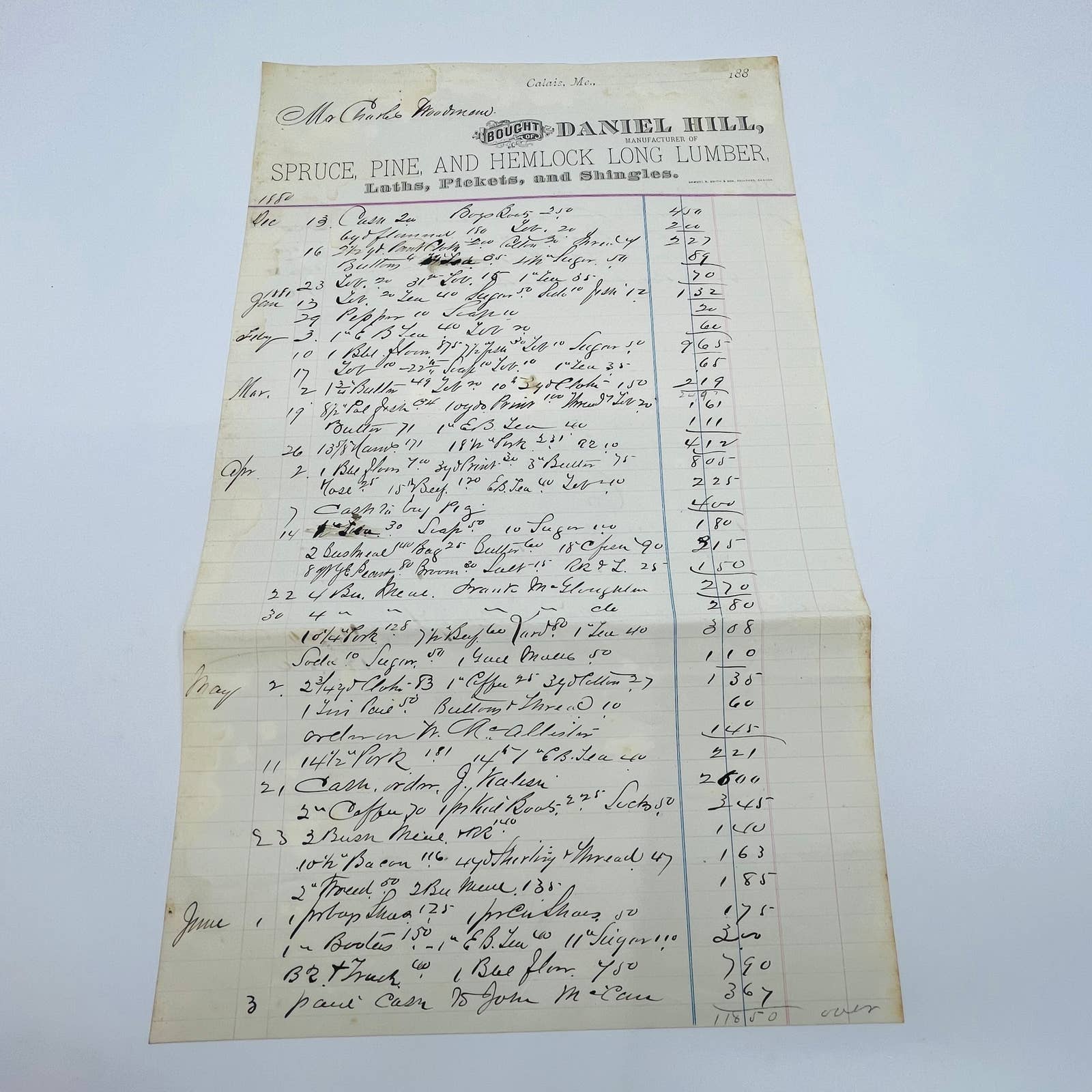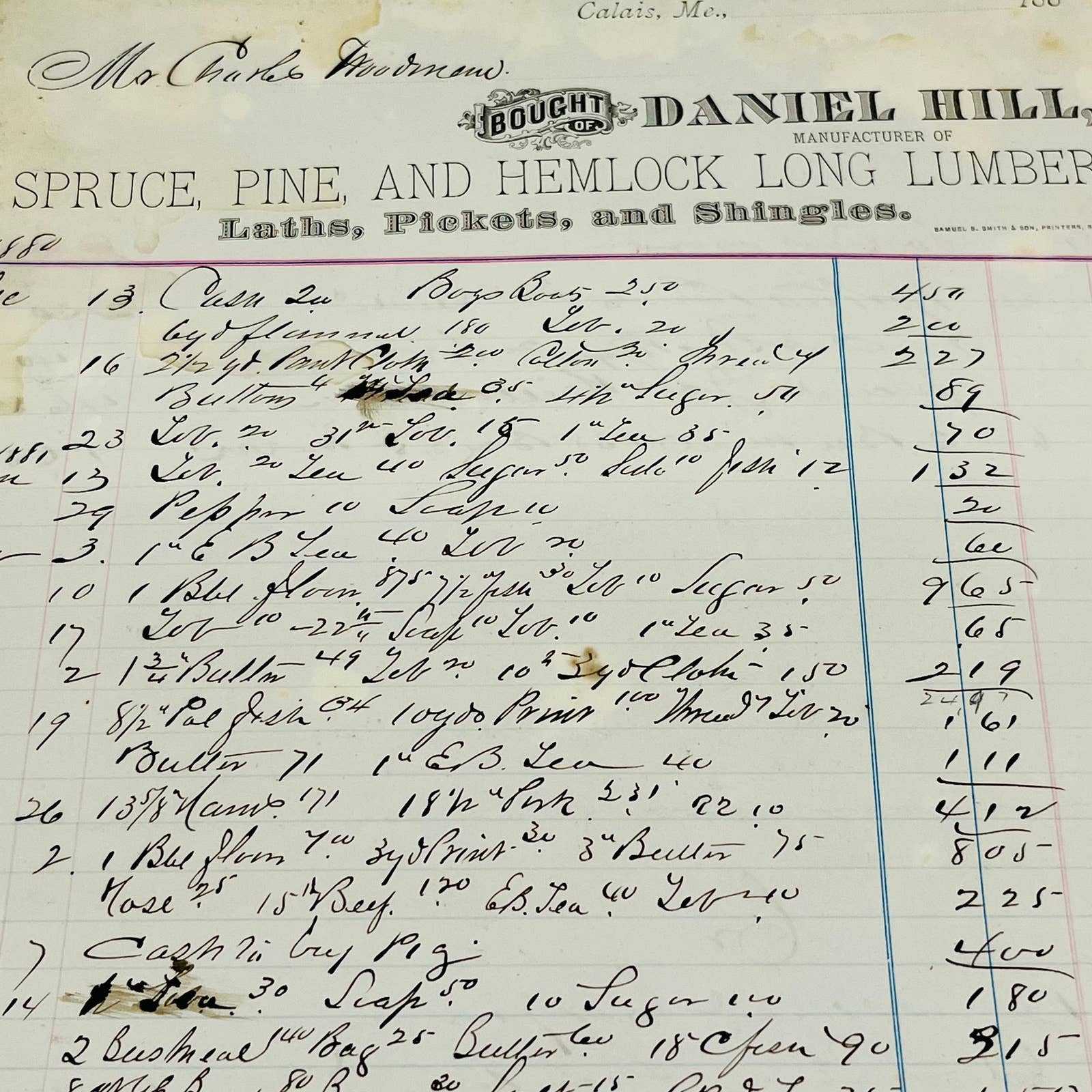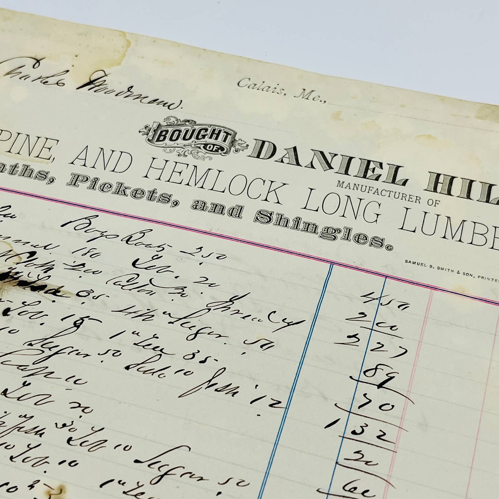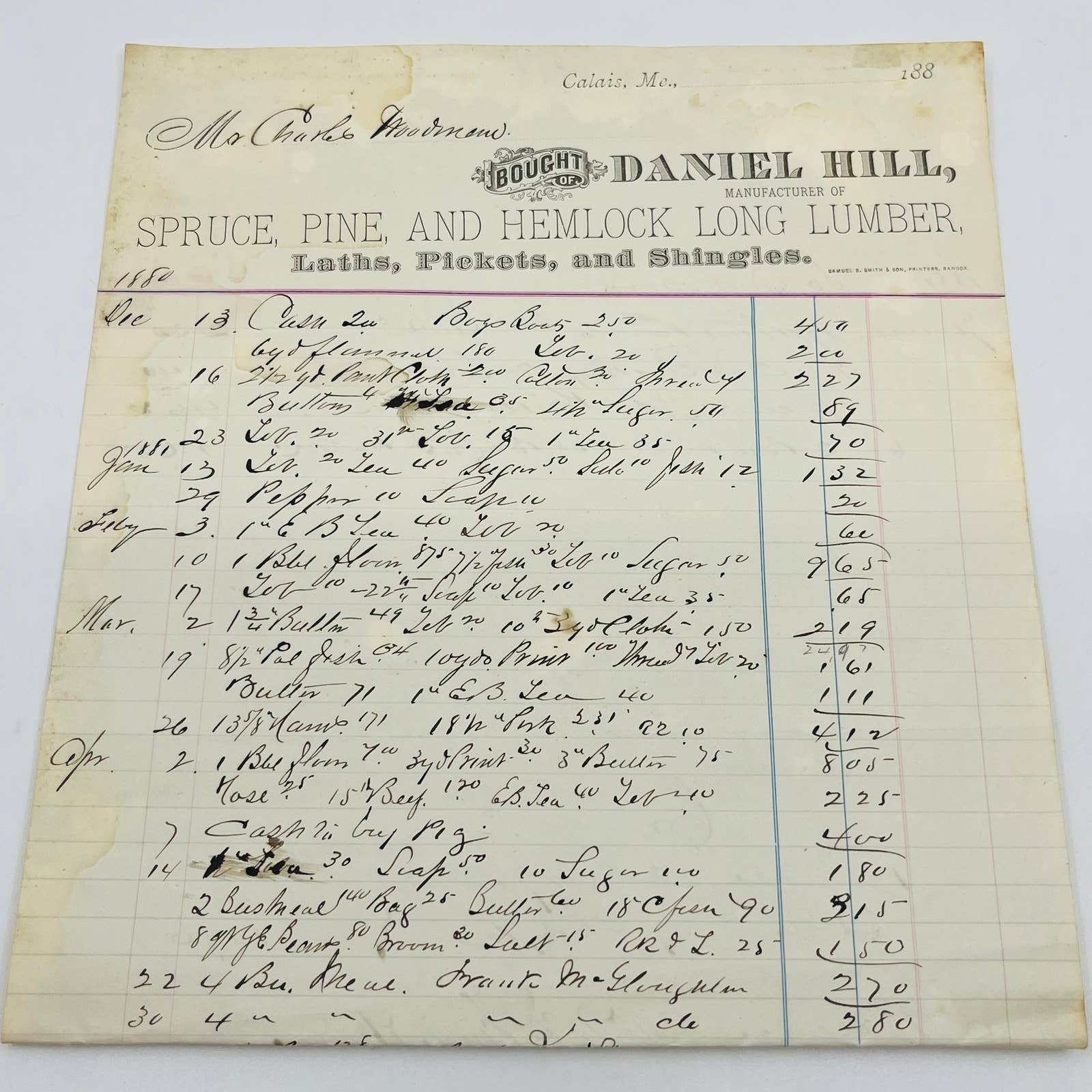 1881 Daniel Hill Lumber Calais Maine Billhead Letterhead Receipt AA4