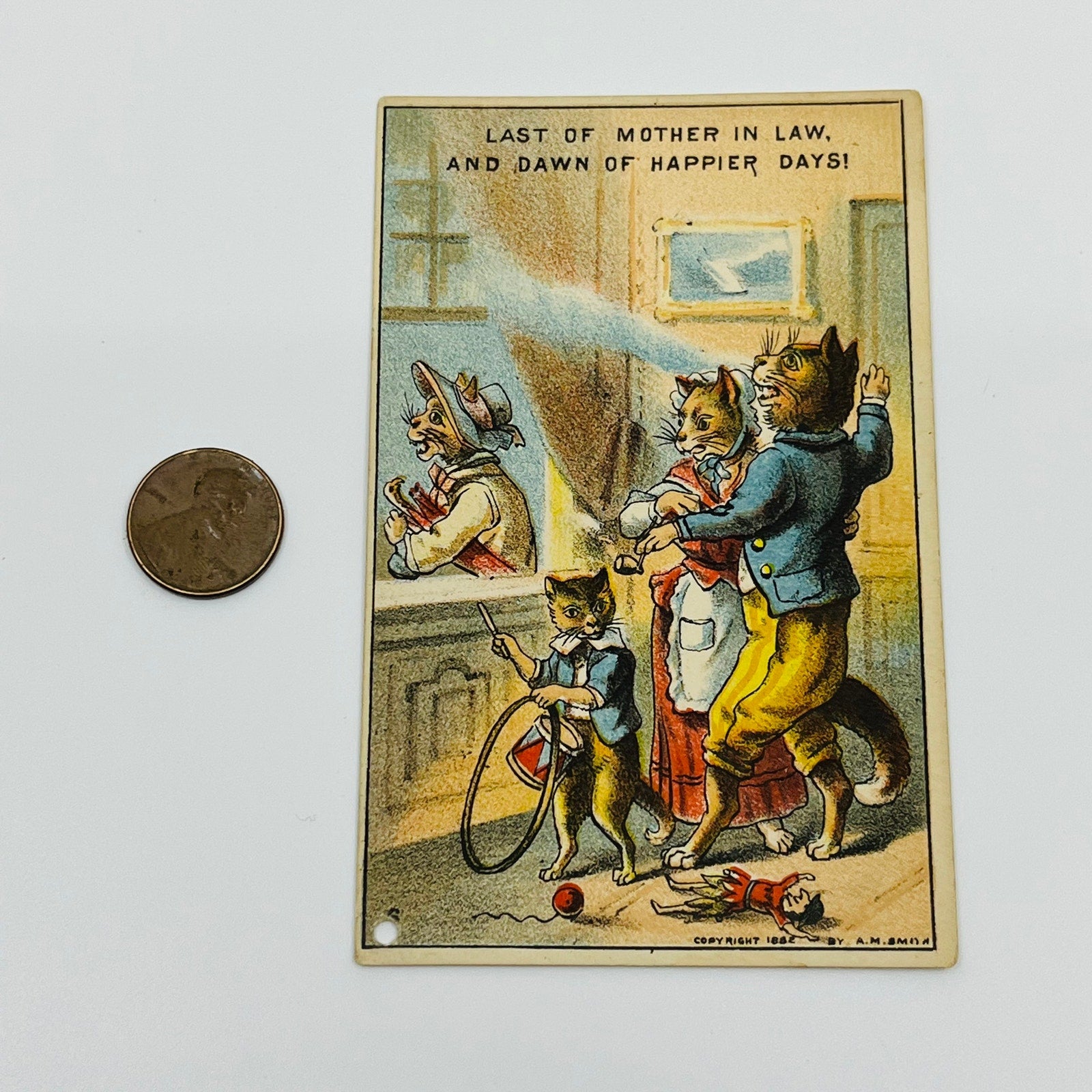 1882 Trade Card Last of Mother in Law Anthropomorphic Cats Brooklyn NY AH9-M8