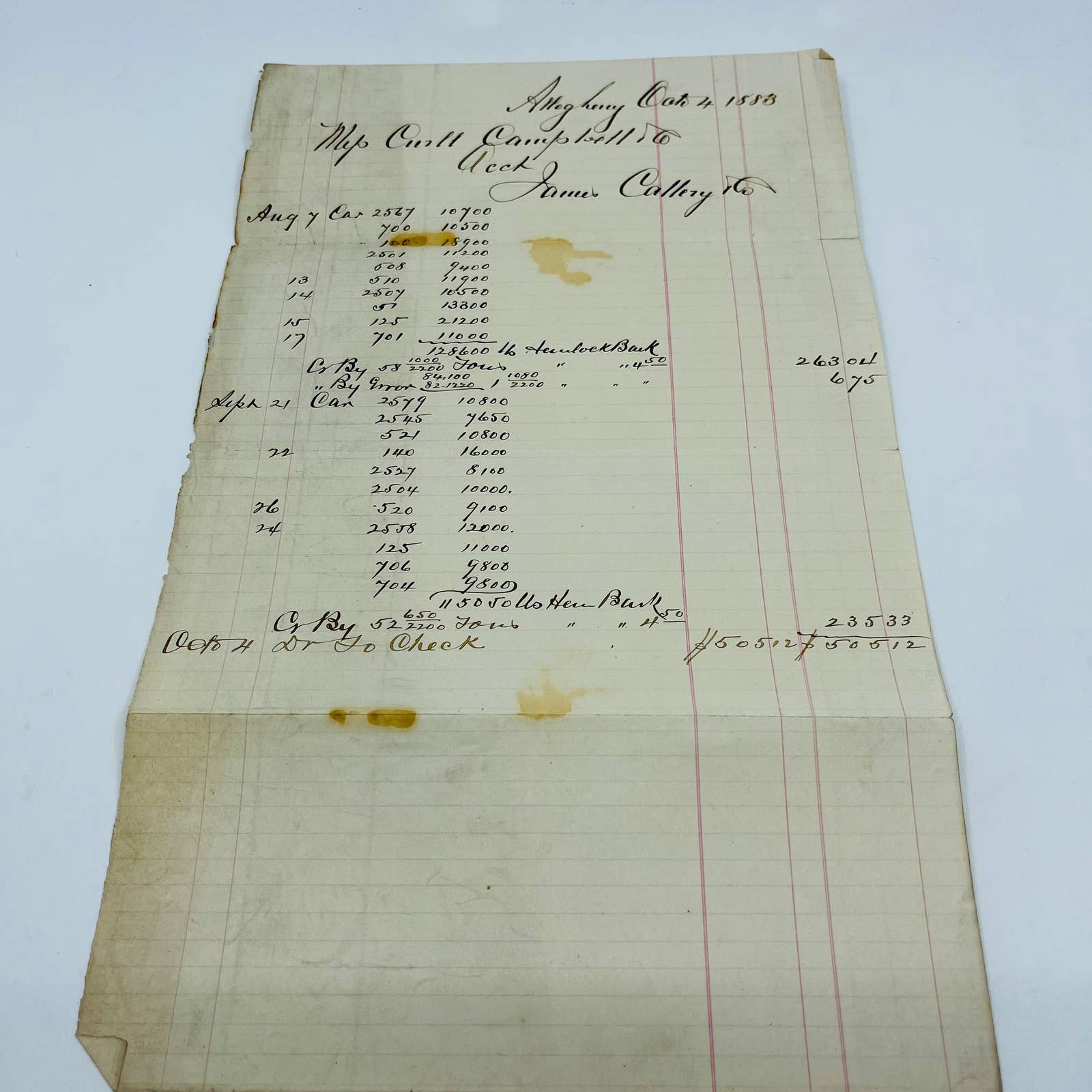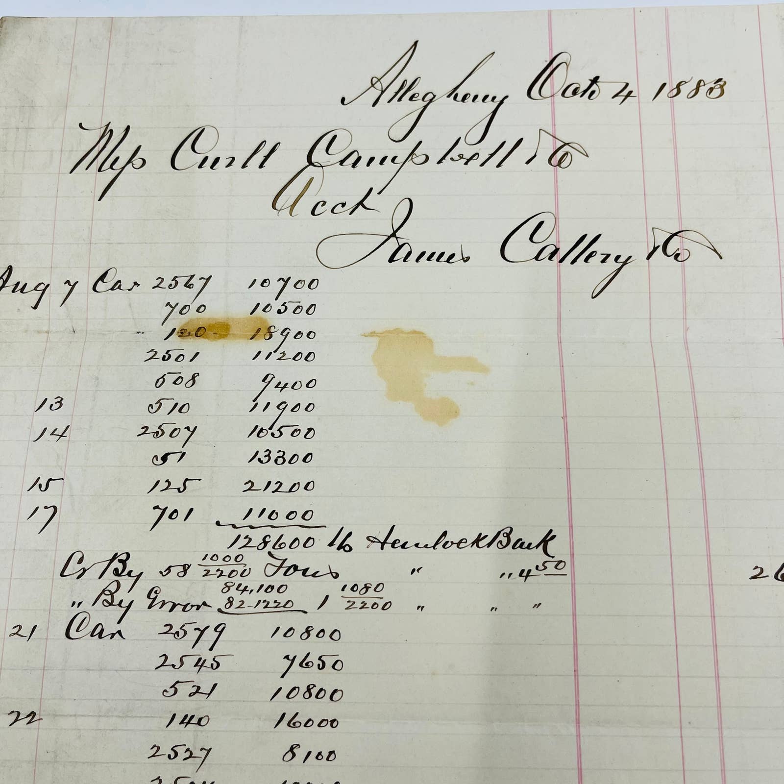 1883 Allegheny Oats James Callery Pennsylvania Billhead Letterhead Receipt AA4