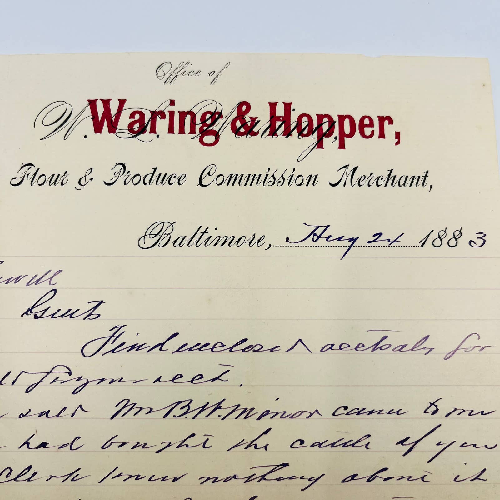 1883 Waring & Hopper Dry Goods Baltimore MD Memo Letterhead Correspondence AA4