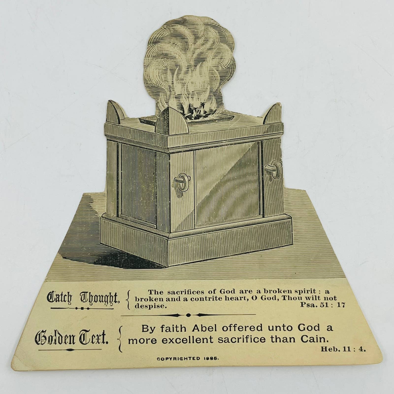 1885 Victorian Holy Prayer Card Die Cut Engraving Psalms 51:17 Hebrews 11:4 AA2