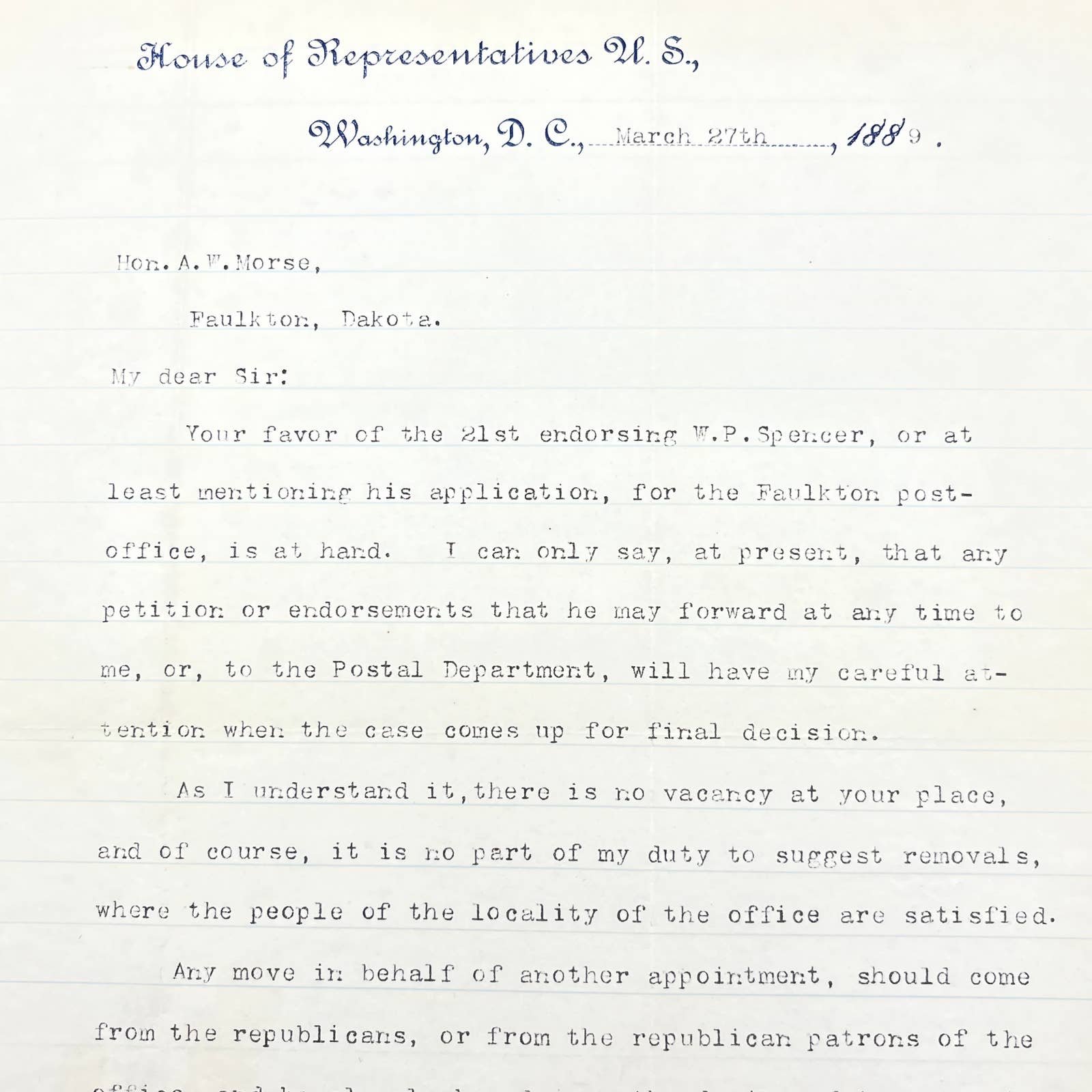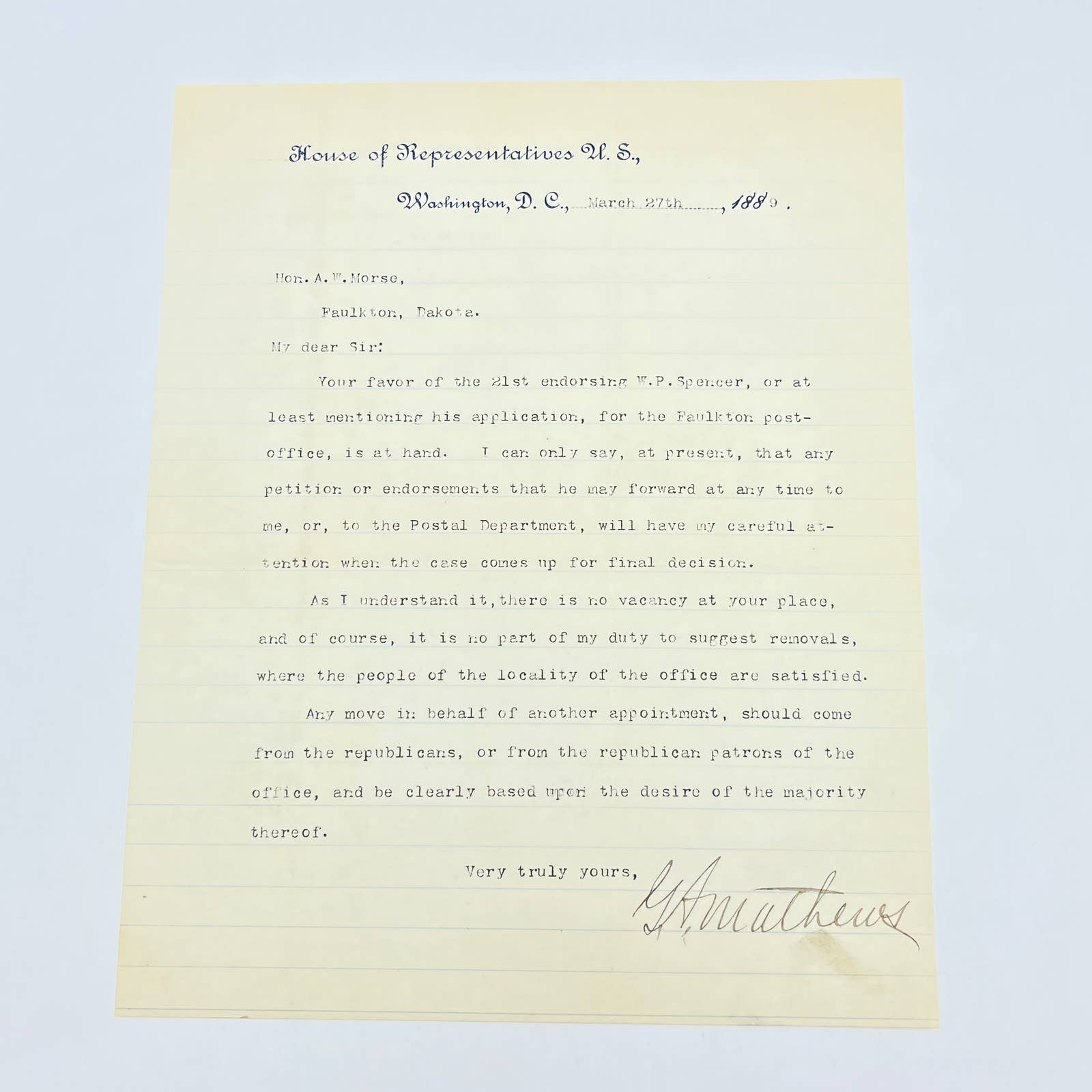 1886 House of Representatives Letterhead Signed by Rep George Mathews of GA AB7