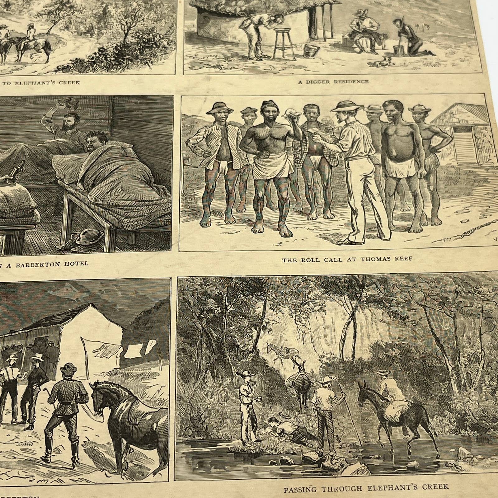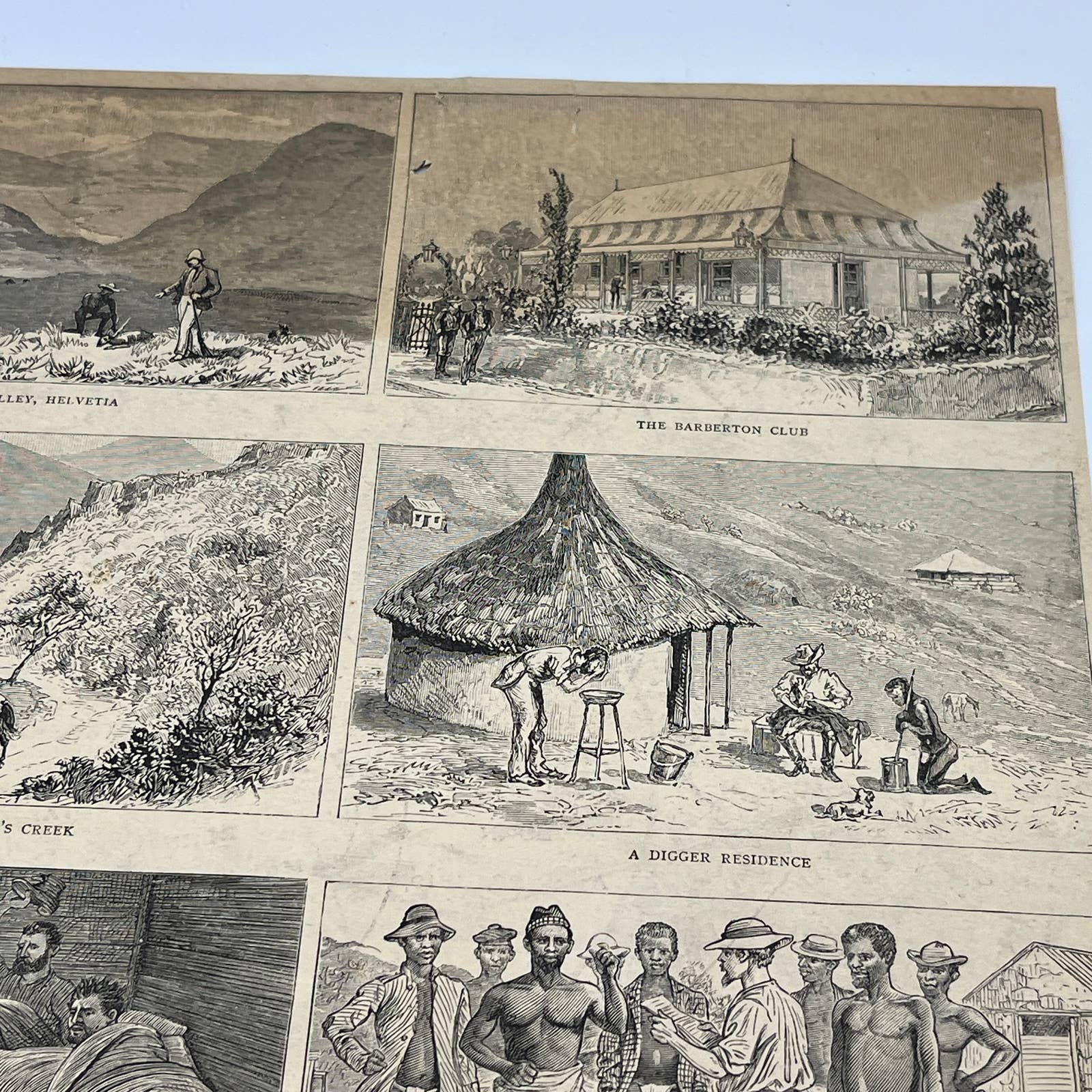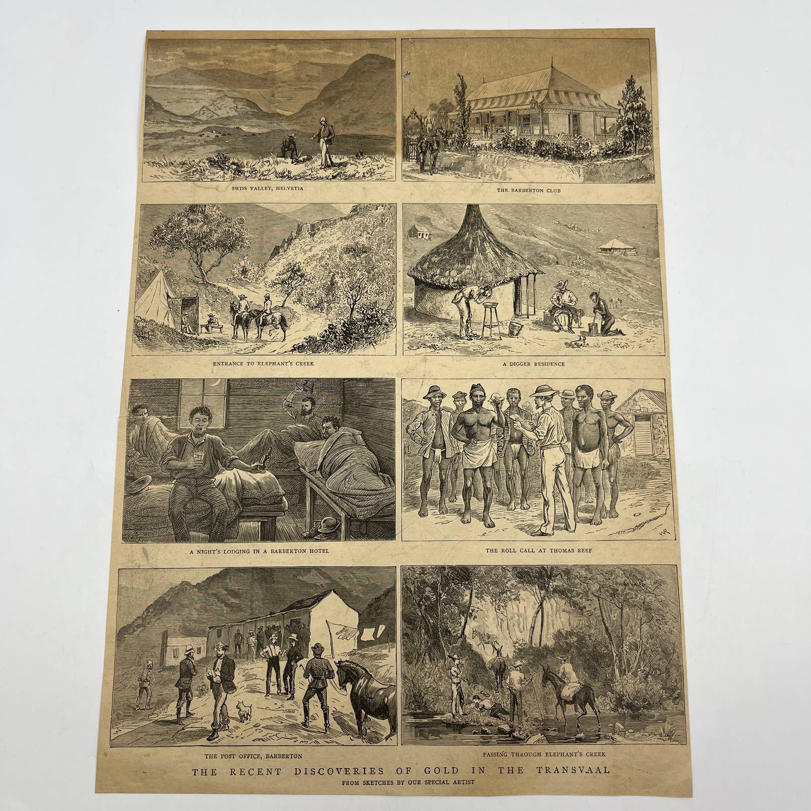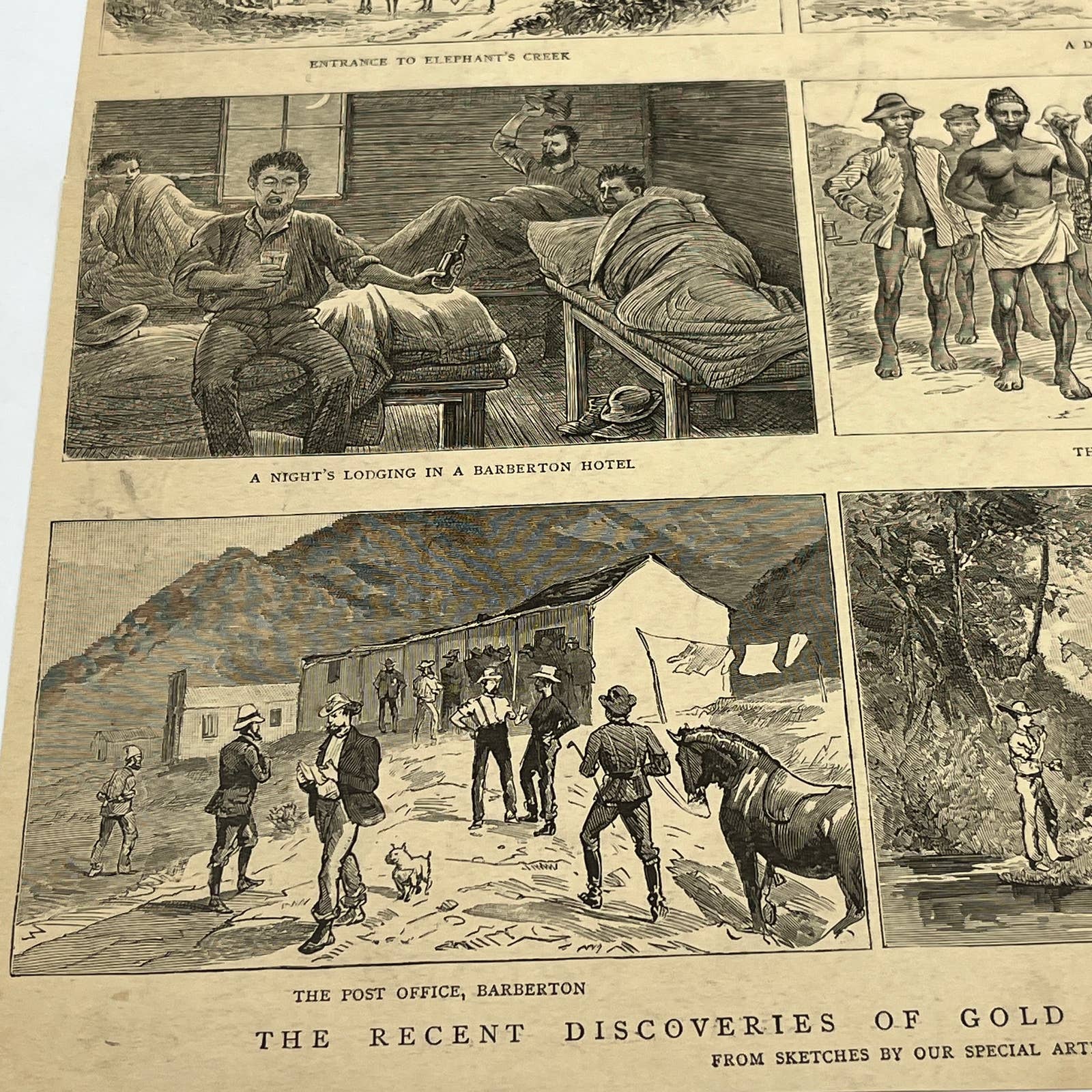 1887 Engraving The Recent Discoveries of Gold in the Transval 9x13 FL5