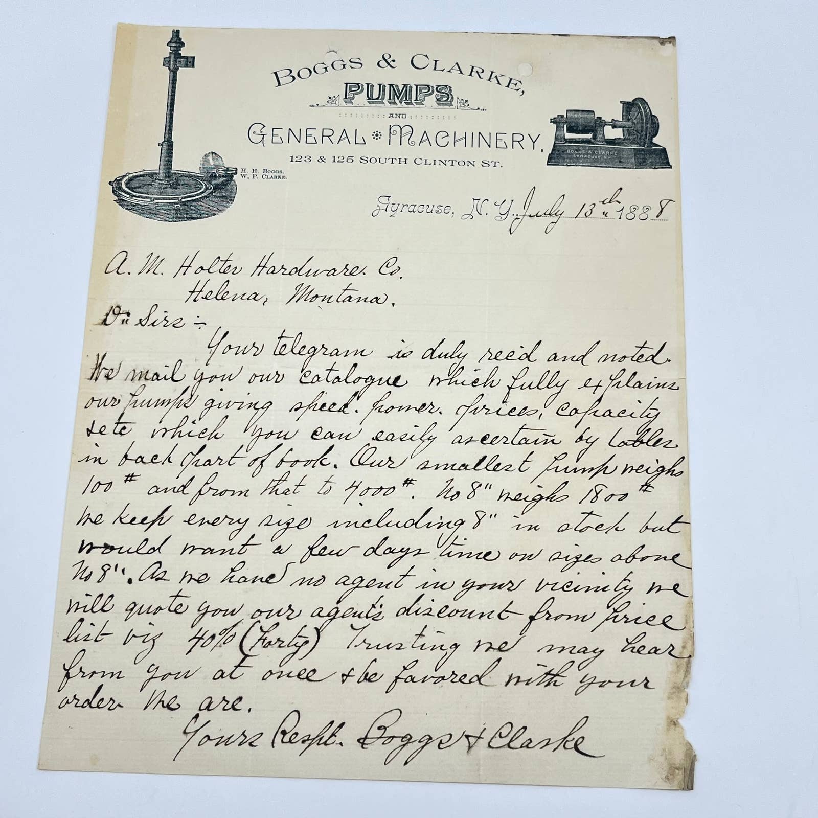 1888 Boggs & Clarke Pumps & General Machinery Letterhead Syracuse NY AB5
