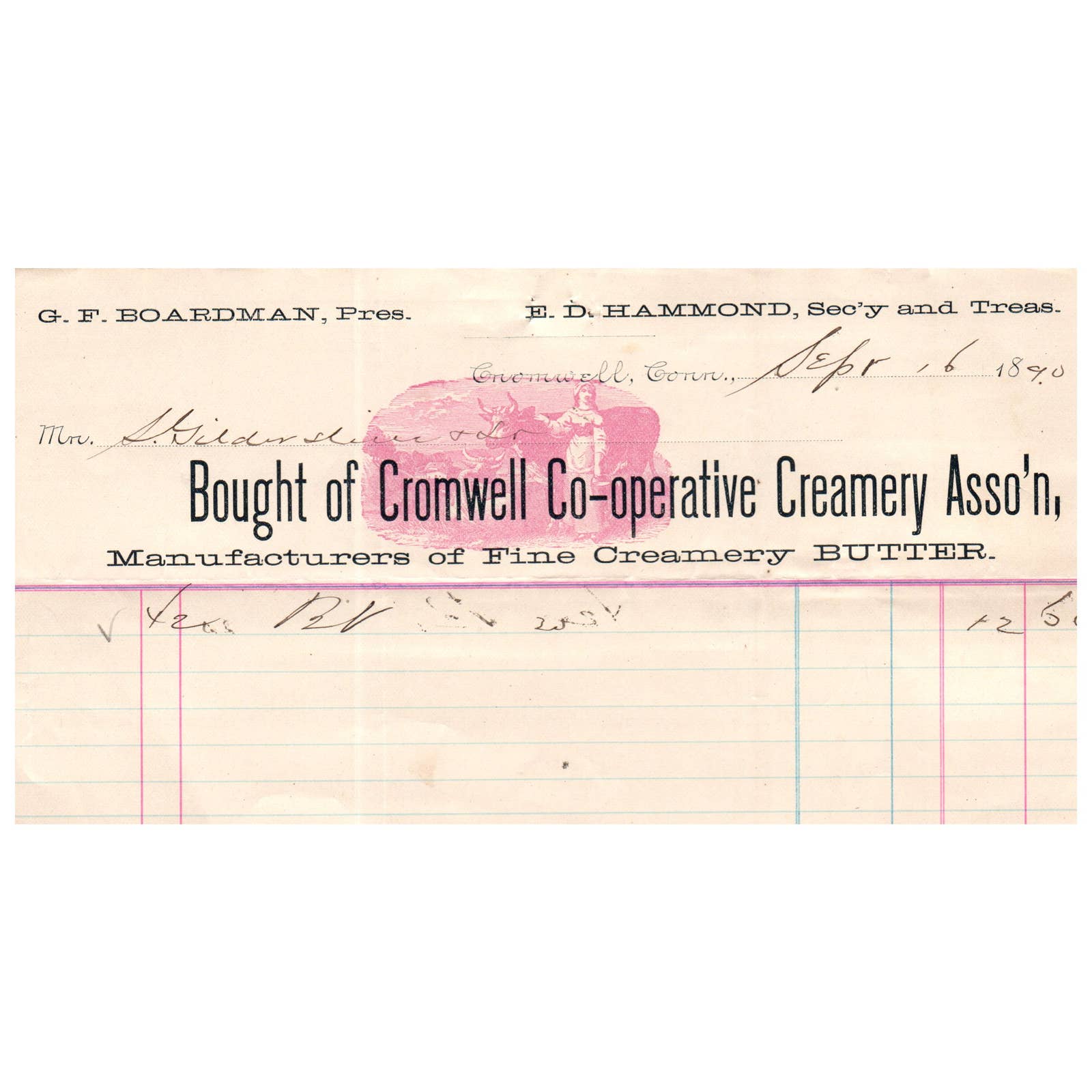 1890 Cromwell Co-operative Creamery Letterhead Billhead Boardman Cromwell CT AC9