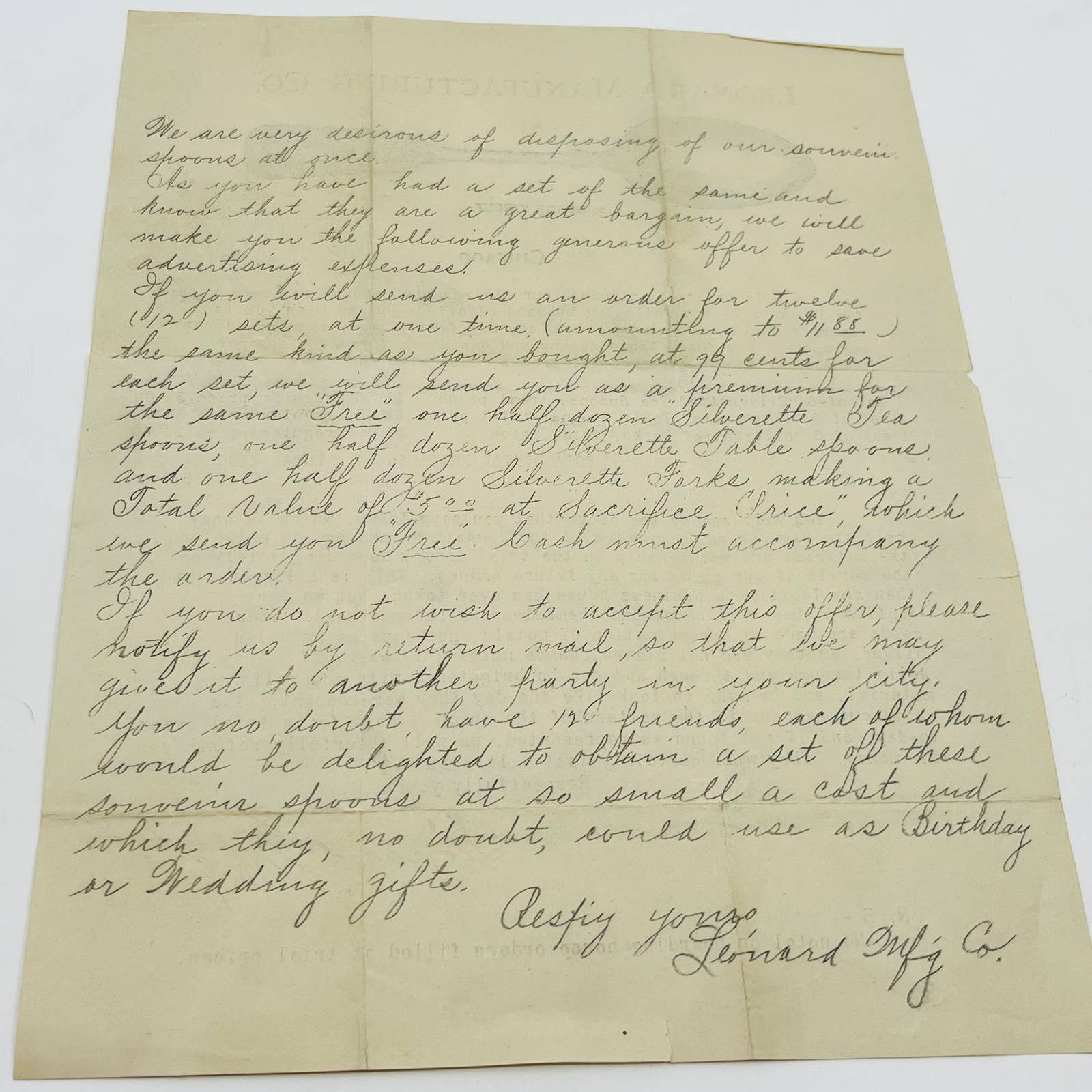 1890s Leonard Manufacturing Co. Silverware Letterhead & Envelope Chicago IL D3