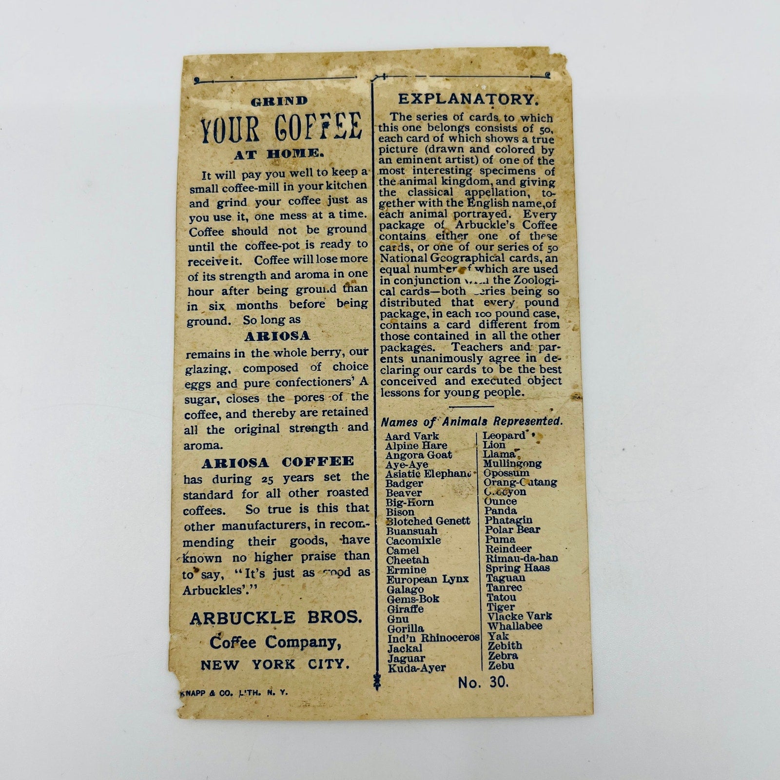 1890s Victorian Trade Card Arbuckle Coffee Ariosa NY Mullingong Platypus AH9-M10