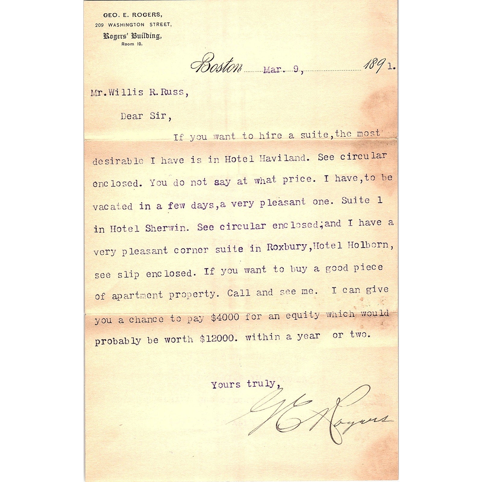 1891 George E Rogers Letterhead Memo Washington St Boston AF4-2