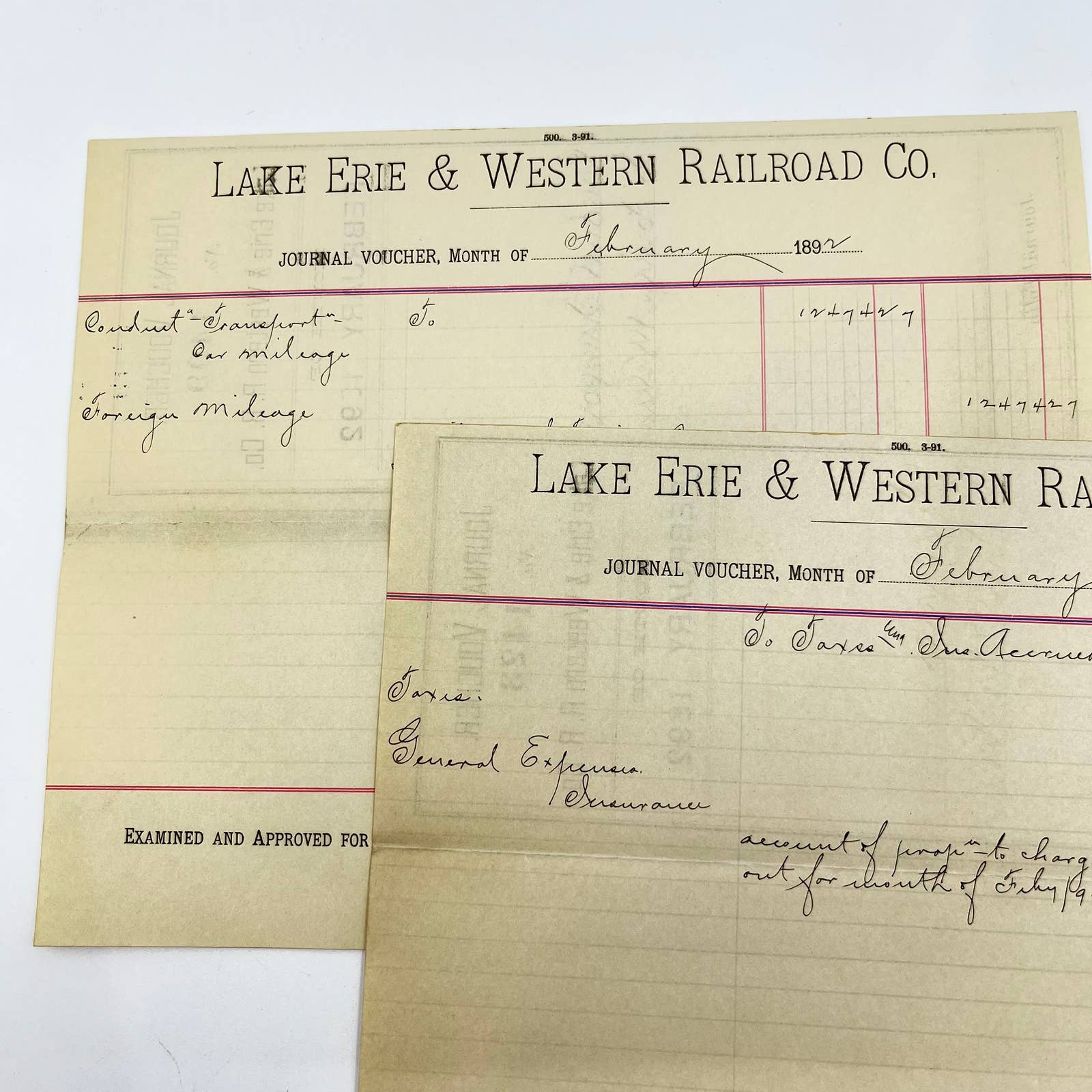 1892 Lake Erie & Western Railroad Co. Journal Voucher RR Lot of 2 AB1-3
