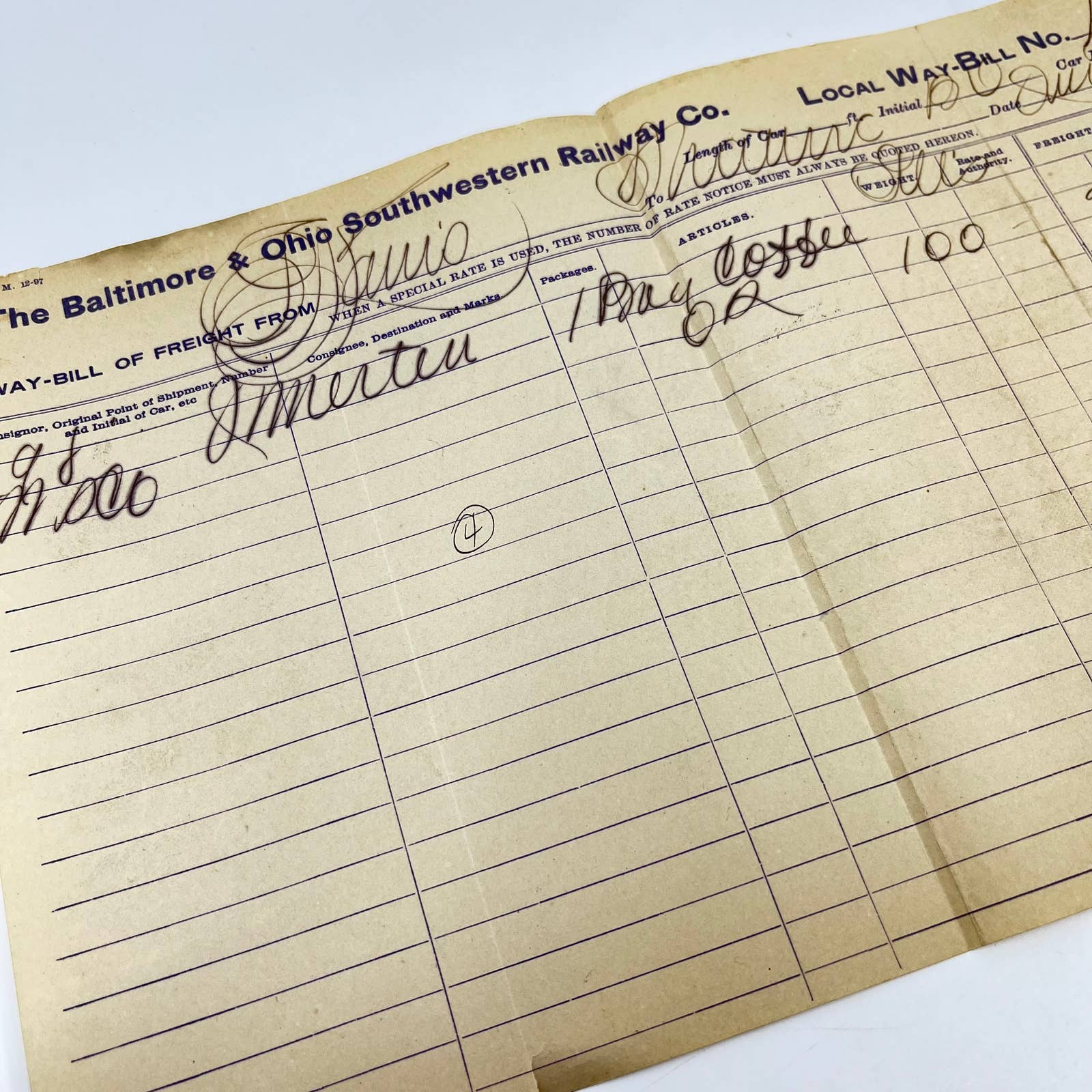 1897 B&O Railroad Baltimore and Ohio RR Way Bill AB1