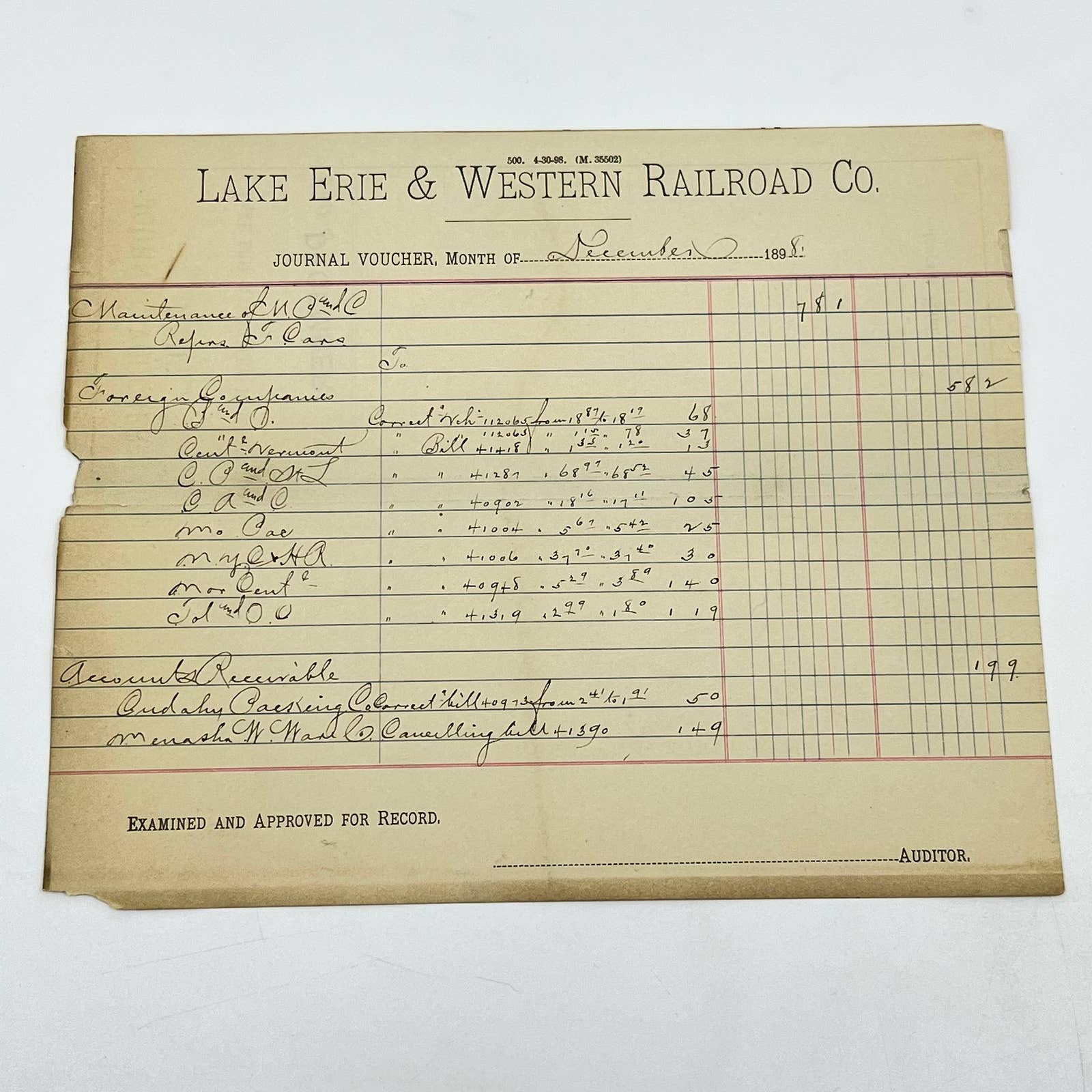1898 Lake Erie & Western Railroad Co. Journal Voucher RR AB1