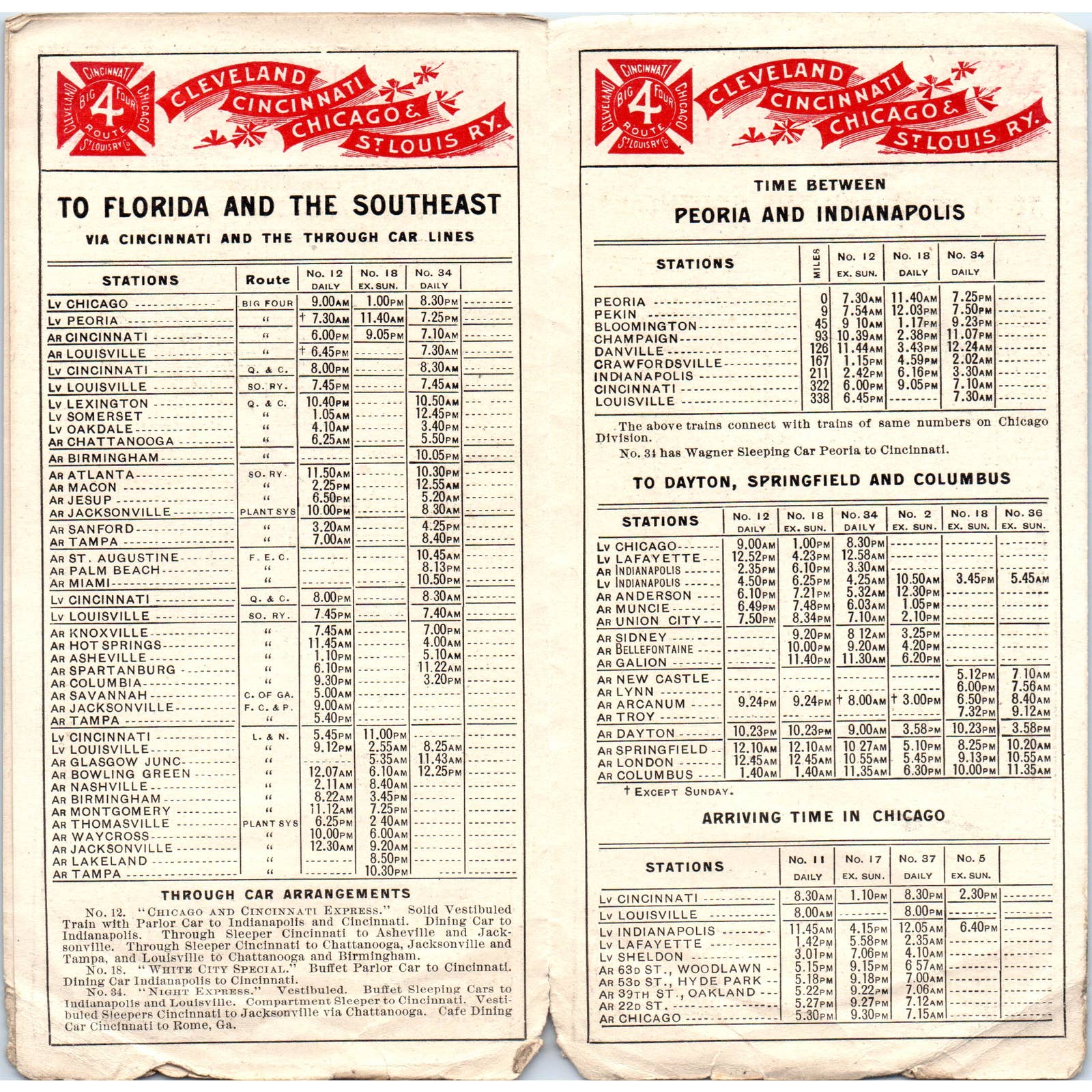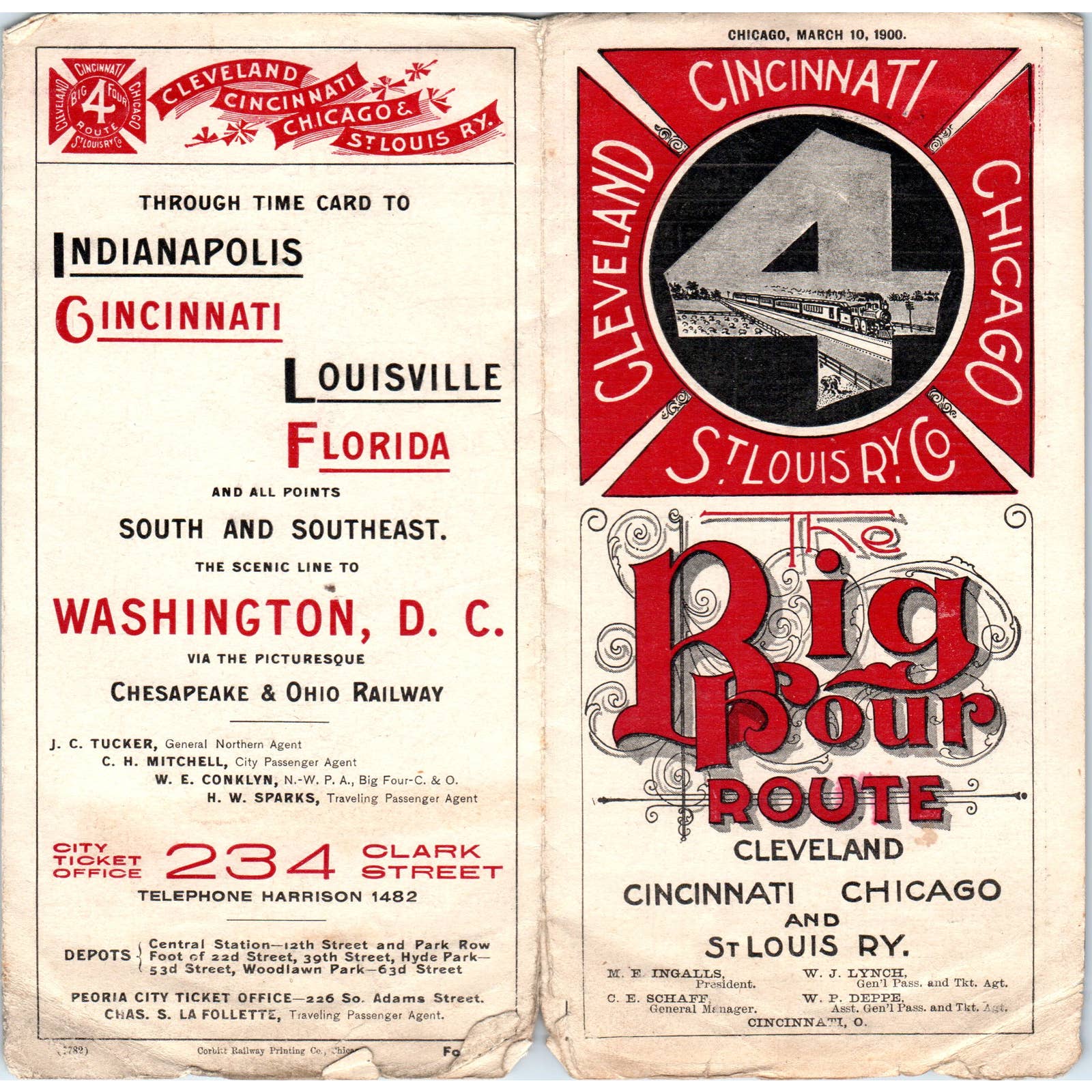 1900 Big Four Route Cleveland Cincinnati Chicago St. Louis Railway Timetable SE8