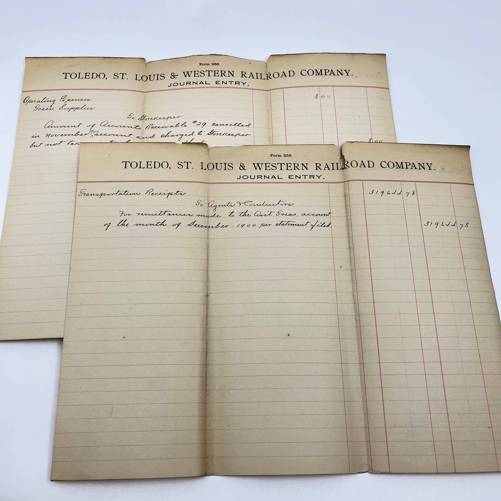 1900 Toledo, St. Louis & Western Railroad Company Journal Entry Lot of 2 AB2-1