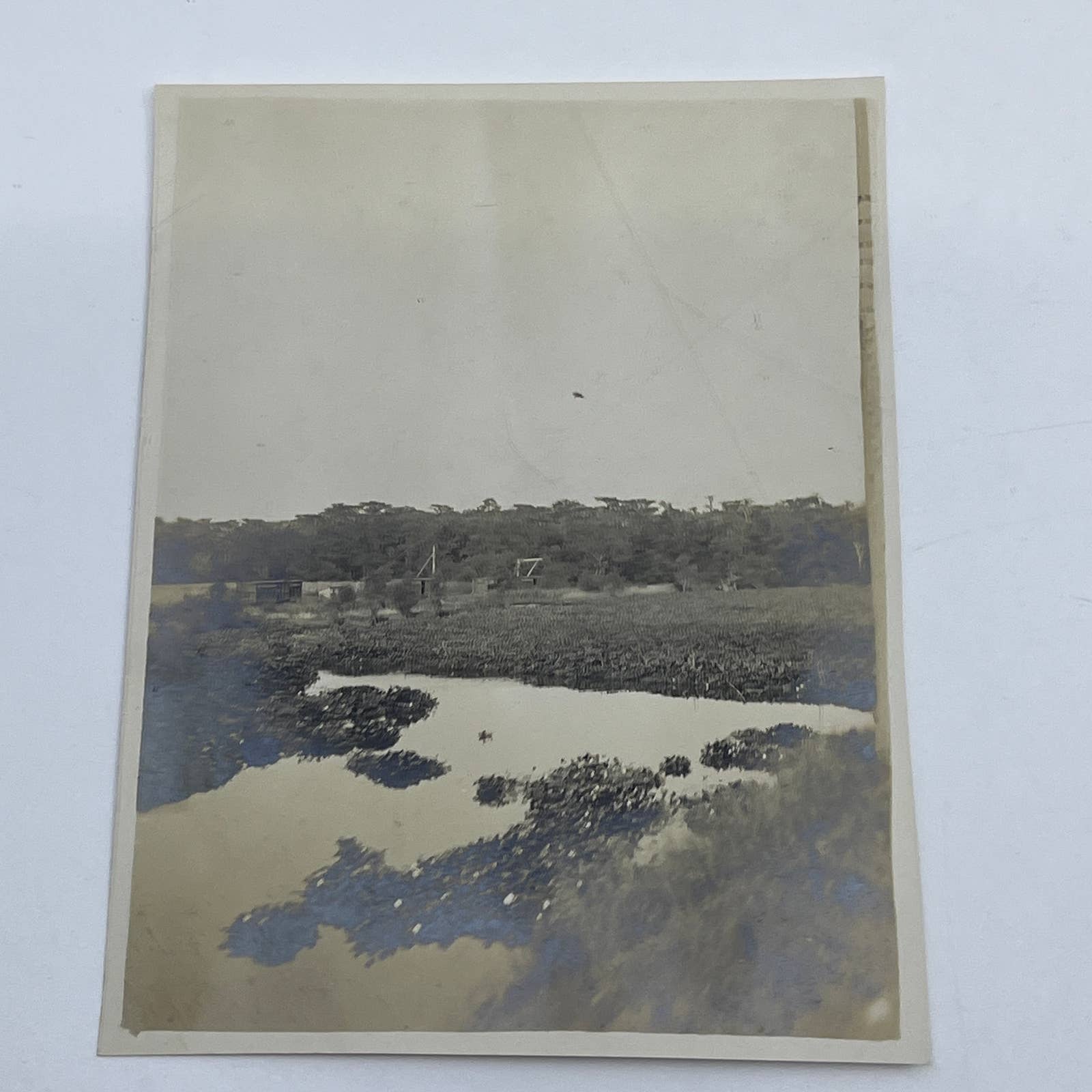 1903 Original Sepia Photograph Pond Lillies Near Southern Pacific Railroad RR in Louisiana AC7