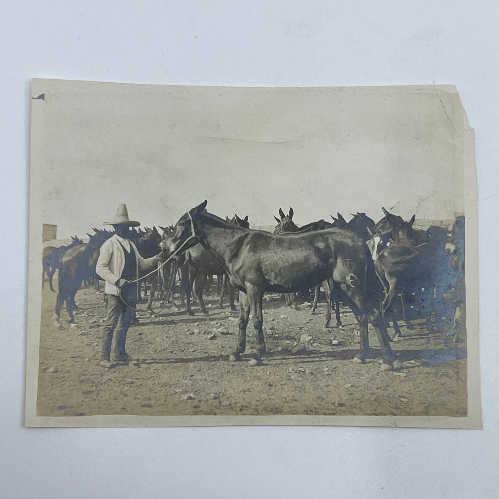 1903 Original Sepia Photograph Farmer & Mule at Hacienda Tetillas Zacatecas AC7